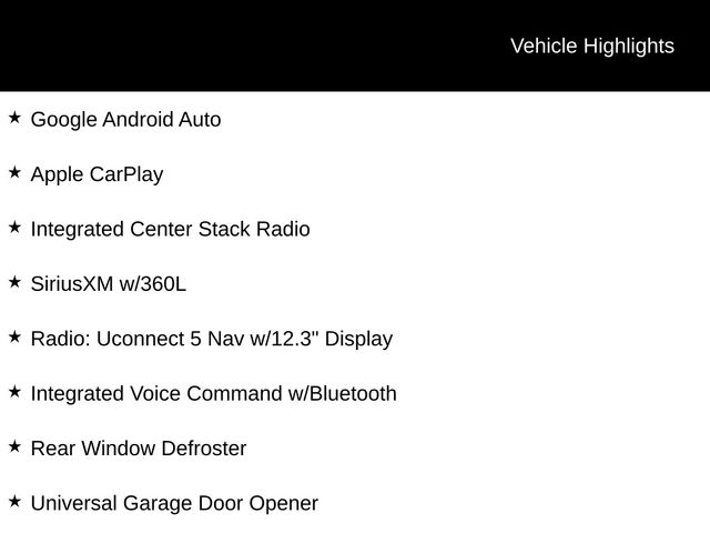 - Radio: Uconnect 5 Nav w/12.3" Display