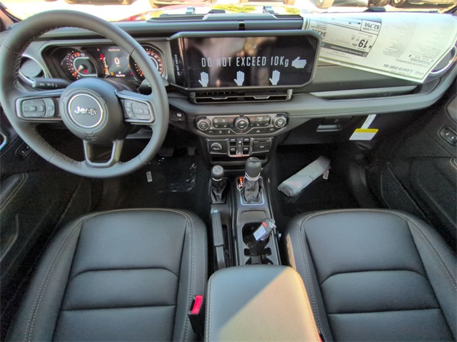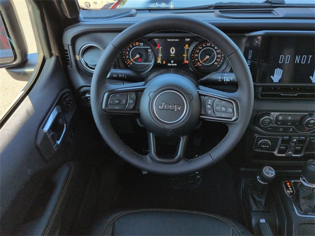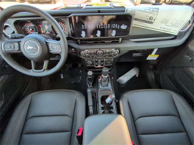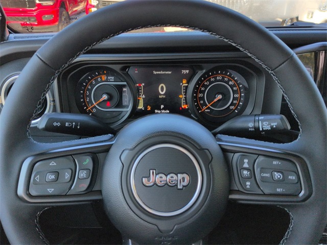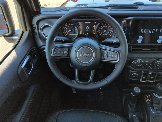 Convenience Group (Corning Gorilla Glass, Daytime Running Lamp System, Emergency/Assistance Call, Front Door Locks 2-Door Passive Entry, Heated Front Seats, Heated Steering Wheel, Remote Start System, and Universal Garage Door Opener), Quick Order Package 24Q High Tide (97 MPH Vehicle Max Speed Calibration, Advanced Brake Assist, Automatic Headlamps, Body Color 3-Piece Hard Top, Body Color Fender Flares (2-Piece), Deep Tint Sunscreen Windows, Freedom Panel Storage Bag, Full Length Floor Console Premium Armrest, Full Speed Forward Collision Warning Plus, Hard Seat Back, High Tide, High Tide Tailgate & Hood Decals, Integrated Radar Camera Module (IRCM), Leather Wrapped Park Brake Handle, Leather Wrapped Shift Knob, Power 4-Way Driver Lumbar Adjust, Power 4-Way Passenger Lumbar Adjust, Power Adjust 8-Way Driver Seat, Power Adjust 8-Way Front Passenger Seat, Power Heated Mirrors, Premium Door Trim Panel, Premium McKinley Trimmed Seats, Premium Wrapped Steering Wheel, Rear Armrest w/Cupholder Seat, Rear Sliding Window, Rear Window Defroster, Security Alarm, Sun Visors w/Illuminated Vanity Mirrors, Wheels: 17" x 7.5" Painted Black, and Willys Suspension), 110 MPH Vehicle Max Speed Calibration, 12.3" Touchscreen Display, 3.73 Rear Axle Ratio, 4-Wheel Disc Brakes, 4G LTE Wi-Fi Hot Spot, 8 Speakers, ABS brakes, Air Conditioning, Alexa Built-In, AM/FM radio: SiriusXM, Apple CarPlay, Apple CarPlay/Android Auto, Brake assist, Cloth Low-Back Bucket Seats, Compass, Connectivity - US/Canada, Delay-off headlights, Driver door bin, Driver vanity mirror, Dual front impact airbags, Dual front side impact airbags, Electronic Stability Control, Front anti-roll bar, Front Bucket Seats, Front Center Armrest w/Storage, Front fog lights, Front reading lights, Google Android Auto, Illuminated entry, Integrated roll-over protection, Low tire pressure warning, MOPAR All-Weather Slush Mats, Normal Duty Suspension, Occupant sensing airbag, Outside temperature display, Overhead airbag, Panic alarm, ParkView Rear Back-Up Camera, Passenger door bin, Passenger vanity mirror, Power steering, Power windows, Radio data system, Radio: Uconnect 5 w/12.3" Display, Rear anti-roll bar, Rear reading lights, Remote keyless entry, Side Steps, Speed control, Split folding rear seat, Steering wheel mounted audio controls, Tachometer, Telescoping steering wheel, Tilt steering wheel, Traction control, Trip computer, USB Host Flip, Variably intermittent wipers, Voltmeter, and Wheels: 17" x 7.5" Black Steel Styled. Price includes: $1000 - 2025 South BC Regional Bonus Cash SCSN. Exp. 11/03/2025 $2250 - 2025 National Bonus Cash . Exp. 11/03/2025