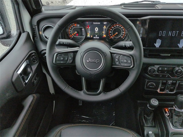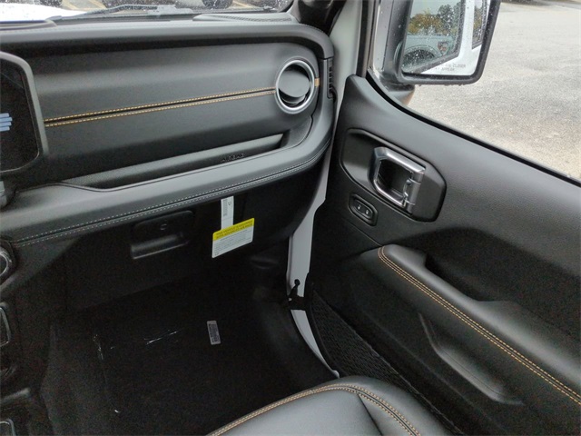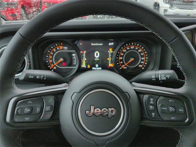 Convenience Group (Corning Gorilla Glass, Daytime Running Lamp System, Emergency/Assistance Call, Front Door Locks 2-Door Passive Entry, Heated Front Seats, Heated Steering Wheel, Remote Start System, and Universal Garage Door Opener), Quick Order Package 24Q High Tide (97 MPH Vehicle Max Speed Calibration, Advanced Brake Assist, Automatic Headlamps, Body Color 3-Piece Hard Top, Body Color Fender Flares (2-Piece), Deep Tint Sunscreen Windows, Freedom Panel Storage Bag, Full Length Floor Console Premium Armrest, Full Speed Forward Collision Warning Plus, Hard Seat Back, High Tide, High Tide Tailgate & Hood Decals, Integrated Radar Camera Module (IRCM), Leather Wrapped Park Brake Handle, Leather Wrapped Shift Knob, Power 4-Way Driver Lumbar Adjust, Power 4-Way Passenger Lumbar Adjust, Power Adjust 8-Way Driver Seat, Power Adjust 8-Way Front Passenger Seat, Power Heated Mirrors, Premium Door Trim Panel, Premium McKinley Trimmed Seats, Premium Wrapped Steering Wheel, Rear Armrest w/Cupholder Seat, Rear Sliding Window, Rear Window Defroster, Security Alarm, Sun Visors w/Illuminated Vanity Mirrors, Wheels: 17" x 7.5" Painted Black, and Willys Suspension), 110 MPH Vehicle Max Speed Calibration, 12.3" Touchscreen Display, 3.73 Rear Axle Ratio, 4-Wheel Disc Brakes, 4G LTE Wi-Fi Hot Spot, 8 Speakers, ABS brakes, Air Conditioning, Alexa Built-In, AM/FM radio: SiriusXM, Apple CarPlay, Apple CarPlay/Android Auto, Brake assist, Cloth Low-Back Bucket Seats, Compass, Connectivity - US/Canada, Delay-off headlights, Driver door bin, Driver vanity mirror, Dual front impact airbags, Dual front side impact airbags, Electronic Stability Control, Front anti-roll bar, Front Bucket Seats, Front Center Armrest w/Storage, Front fog lights, Front reading lights, Google Android Auto, Illuminated entry, Integrated roll-over protection, Low tire pressure warning, MOPAR All-Weather Slush Mats, Normal Duty Suspension, Occupant sensing airbag, Outside temperature display, Overhead airbag, Panic alarm, ParkView Rear Back-Up Camera, Passenger door bin, Passenger vanity mirror, Power steering, Power windows, Radio data system, Radio: Uconnect 5 w/12.3" Display, Rear anti-roll bar, Rear reading lights, Remote keyless entry, Side Steps, Speed control, Split folding rear seat, Steering wheel mounted audio controls, Tachometer, Telescoping steering wheel, Tilt steering wheel, Traction control, Trip computer, USB Host Flip, Variably intermittent wipers, Voltmeter, and Wheels: 17" x 7.5" Black Steel Styled. Price includes: $1000 - 2025 South BC Regional Bonus Cash SCSN. Exp. 11/03/2025 $2250 - 2025 National Bonus Cash . Exp. 11/03/2025