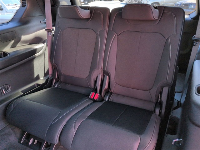 Quick Order Package 23D Laredo X (Laredo X and Power Sunroof), 3.45 Rear Axle Ratio, 3rd row seats: split-bench, 4-Wheel Disc Brakes, 6 Speakers, ABS brakes, Air Conditioning, Alloy wheels, AM/FM radio: SiriusXM, Anti-whiplash front head restraints, Automatic temperature control, Brake assist, Bumpers: body-color, Cloth Seats, Compass, Delay-off headlights, Driver door bin, Driver vanity mirror, Dual front impact airbags, Dual front side impact airbags, Electronic Stability Control, Emergency communication system, Four wheel independent suspension, Front anti-roll bar, Front Bucket Seats, Front Center Armrest w/Storage, Front dual zone A/C, Front reading lights, Fully automatic headlights, Heated door mirrors, Illuminated entry, Knee airbag, Low tire pressure warning, Manual Fold Seatbacks, Model Year Tracking, Normal Duty Suspension, Occupant sensing airbag, Outside temperature display, Overhead airbag, Overhead console, Panic alarm, ParkView Rear Back-Up Camera, Passenger door bin, Passenger vanity mirror, Power door mirrors, Power driver seat, Power steering, Power windows, Radio data system, Radio: Uconnect 5 w/8.4" Display, Rear air conditioning, Rear anti-roll bar, Rear reading lights, Rear window defroster, Rear window wiper, Reclining 3rd row seat, Remote keyless entry, Security system, Speed control, Speed-Sensitive Wipers, Split folding rear seat, Spoiler, Steering wheel mounted audio controls, Tachometer, Telescoping steering wheel, Tilt steering wheel, Traction control, Trip computer, Variably intermittent wipers, Voltmeter, and Wheels: 18" x 8.0" Fully Painted Aluminum. Price includes: $2500 - 2025 National Retail Bonus Cash . Exp. 01/05/2026 $500 - 2025 South BC Retail Bonus Cash . Exp. 01/05/2026