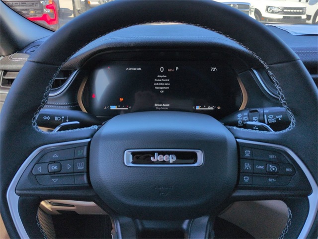 Quick Order Package 23E (DISC), 4-Wheel Disc Brakes, 6 Speakers, ABS brakes, Active Noise Control System, Air Conditioning, Alloy wheels, AM/FM radio: SiriusXM with 360L, Anti-whiplash front head restraints, Audio memory, Auto High-beam Headlights, Automatic temperature control, Brake assist, Bumpers: body-color, Capri Leatherette Seats, Compass, Delay-off headlights, Driver door bin, Driver vanity mirror, Dual front impact airbags, Dual front side impact airbags, Dual-Pane Panoramic Sunroof, Electronic Stability Control, Emergency communication system, Four wheel independent suspension, Front anti-roll bar, Front Bucket Seats, Front Center Armrest w/Storage, Front dual zone A/C, Front fog lights, Front reading lights, Fully automatic headlights, Garage door transmitter, Heated door mirrors, Heated front seats, Heated rear seats, Heated steering wheel, Illuminated entry, Knee airbag, Low tire pressure warning, Memory seat, Model Year Tracking, Navigation System, Normal Duty Suspension, Occupant sensing airbag, Outside temperature display, Overhead airbag, Overhead console, Panic alarm, ParkView Rear Back-Up Camera, Passenger door bin, Passenger vanity mirror, Power door mirrors, Power driver seat, Power Liftgate, Power passenger seat, Power steering, Power windows, Radio data system, Radio: Uconnect 5 Nav w/10.1" Display, Rear anti-roll bar, Rear reading lights, Rear window defroster, Rear window wiper, Remote keyless entry, Security system, Speed control, Speed-Sensitive Wipers, Split folding rear seat, Spoiler, Steering wheel mounted audio controls, Tachometer, Telescoping steering wheel, Tilt steering wheel, Traction control, Trip computer, Turn signal indicator mirrors, Variably intermittent wipers, Voltmeter, and Wheels: 18" x 8" Polished/Painted Aluminum. Price includes: $1750 - 2025 National Retail Bonus Cash . Exp. 11/03/2025 $500 - 2025 National Jeep Monopoly Money Bonus Cash . Exp. 11/03/2025 $750 - 2025 South BC Retail Bonus Cash . Exp. 11/03/2025 $750 - 2025 South BC SFS Retail Bonus Cash. Exp. 11/03/2025