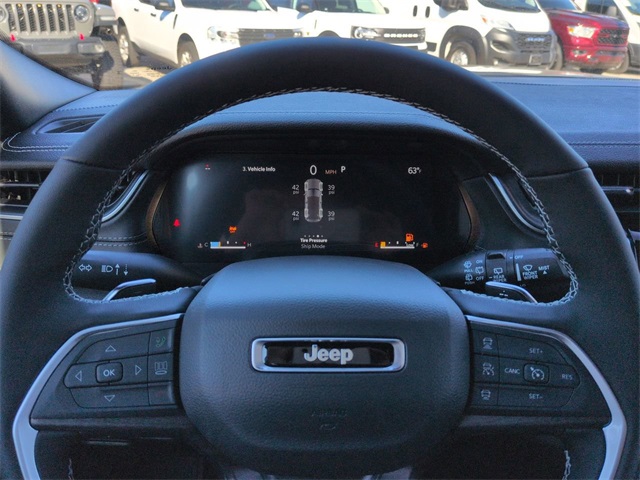 Blackout Model (Black Painted Roof, Delete Limited Badge, Dual-Pane Panoramic Sunroof, Gloss Black Exterior Accents, and Wheels: 20" x 8.5" Black Painted Aluminum), Quick Order Package 22E, 4-Wheel Disc Brakes, 6 Speakers, ABS brakes, Active Noise Control System, Air Conditioning, Alloy wheels, AM/FM radio: SiriusXM with 360L, Anti-whiplash front head restraints, Audio memory, Auto High-beam Headlights, Automatic temperature control, Brake assist, Bumpers: body-color, Capri Leatherette Seats, Compass, Delay-off headlights, Driver door bin, Driver vanity mirror, Dual front impact airbags, Dual front side impact airbags, Electronic Stability Control, Emergency communication system, Four wheel independent suspension, Front anti-roll bar, Front Bucket Seats, Front Center Armrest w/Storage, Front dual zone A/C, Front fog lights, Front reading lights, Fully automatic headlights, Garage door transmitter, Heated door mirrors, Heated front seats, Heated rear seats, Heated steering wheel, Illuminated entry, Knee airbag, Low tire pressure warning, Memory seat, Model Year Tracking, Navigation System, Normal Duty Suspension, Occupant sensing airbag, Outside temperature display, Overhead airbag, Overhead console, Panic alarm, ParkView Rear Back-Up Camera, Passenger door bin, Passenger vanity mirror, Power door mirrors, Power driver seat, Power Liftgate, Power passenger seat, Power steering, Power windows, Radio data system, Radio: Uconnect 5 Nav w/10.1" Display, Rear anti-roll bar, Rear reading lights, Rear window defroster, Rear window wiper, Remote keyless entry, Security system, Speed control, Speed-Sensitive Wipers, Split folding rear seat, Spoiler, Steering wheel mounted audio controls, Tachometer, Telescoping steering wheel, Tilt steering wheel, Traction control, Trip computer, Turn signal indicator mirrors, Variably intermittent wipers, Voltmeter, and Wheels: 18" x 8" Polished/Painted Aluminum. Price includes: $1750 - 2025 National Retail Bonus Cash . Exp. 11/03/2025 $500 - 2025 National Jeep Monopoly Money Bonus Cash . Exp. 11/03/2025 $750 - 2025 South BC Retail Bonus Cash . Exp. 11/03/2025 $750 - 2025 South BC SFS Retail Bonus Cash. Exp. 11/03/2025
