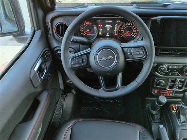 Convenience Group (Heated Front Seats, Heated Steering Wheel, and Universal Garage Door Opener), Quick Order Package 24Y Rubicon X (Acoustic Front Seat Area Carpet, Acoustic Laminated Front Door Glass, Alpine Premium Audio System, Body Color 3-Piece Hard Top, Body Color Rubicon Highline Flare, Freedom Panel Storage Bag, Leather Wrapped Park Brake Handle, Leather Wrapped Shift Knob, MOPAR Hardtop Headliner, MOPAR Hinge-Gate Reinforcement, Nappa Leather Seats, Power 4-Way Driver Lumbar Adjust, Power 4-Way Passenger Lumbar Adjust, Power Adjust 8-Way Driver Seat, Power Adjust 8-Way Front Passenger Seat, Premium Door Trim Panel, Rear Window Defroster, Rear Window Wiper/Washer, Steel Front Bumper, and Steel Rear Bumper), Safety Group (Auto High Beam Headlamp Control, Blind Spot & Cross Path Detection, and ParkSense Rear Park Assist System), Technology Group (12.3" Touchscreen Display, 4G LTE Wi-Fi Hot Spot, Apple CarPlay, Auto-Dimming Rear-View Mirror, Connected Travel & Traffic Services, Connectivity - US/Canada, Google Android Auto, GPS Navigation, HD Radio, Integrated Off-Road Camera, Integrated Voice Command w/Bluetooth, Radio: Uconnect 5 Nav w/12.3" Display, SiriusXM Radio Service, and SiriusXM w/360L), Trailer Tow Prep Package, Xtreme 35" Tire Package (35" Tire Suspension, 97 MPH Vehicle Max Speed Calibration, Anti-Lock 4-Wheel Disc Perf Brakes, and Wheels: 17" x 8" Machined w/Black Pockets), 4-Wheel Disc Brakes, 8 Speakers, ABS brakes, Air Conditioning, Alloy wheels, AM/FM radio: SiriusXM, Apple CarPlay/Android Auto, Automatic temperature control, Aux Battery, Auxiliary Switches, Brake assist, Class II Receiver Hitch, Cloth Low-Back Bucket Seats, Compass, Delay-off headlights, Driver door bin, Driver vanity mirror, Dual front impact airbags, Dual front side impact airbags, Electronic Stability Control, Emergency communication system: Jeep Connect, Front anti-roll bar, Front Bucket Seats, Front Center Armrest w/Storage, Front dual zone A/C, Front fog lights, Front reading lights, Fully automatic headlights, Heated door mirrors, Illuminated entry, Integrated roll-over protection, Low tire pressure warning, MOPAR All-Weather Floor Mats, Non-Lock Fuel Cap w/o Discriminator, Occupant sensing airbag, Outside temperature display, Overhead airbag, Panic alarm, ParkView Rear Back-Up Camera, Passenger door bin, Passenger vanity mirror, Performance Suspension, Power door mirrors, Power steering, Power Top Quarter Window Storage Bag, Power windows, Radio data system, Radio: Uconnect 5 w/12.3" Display, Rear anti-roll bar, Rear reading lights, Remote keyless entry, Removable Rear Quarter Windows, Security system, Sky 1-Touch Power Top, Speed control, Split folding rear seat, Steering wheel mounted audio controls, Stop-Start Dual Battery System, Tachometer, Telescoping steering wheel, Tilt steering wheel, Traction control, Trip computer, Variably intermittent wipers, Voltmeter, Wheel Flare Extensions, and Wheels: 17" x 7.5" Machined/Painted Black. Price includes: $1500 - 2025 National Bonus Cash . Exp. 11/03/2025 $2500 - 2025 National Retail Bonus Cash . Exp. 11/03/2025