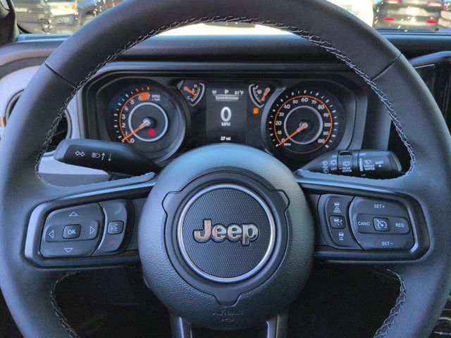 Quick Order Package 24W Willys (4-Wheel Drive Swing Gate Decal, 7 & 4 Pin Wiring Harness, 97 MPH Vehicle Max Speed Calibration, Advanced Brake Assist, Automatic Headlamps, Auxiliary Switches, Black Grille, Class II Receiver Hitch, Conventional Differential Front Axle, Corning Gorilla Glass, Dana M210 Wide HD Tube Front Axle, Dana M220 Wide Rear Axle, Daytime Running Lamps LED Accents, Deep Tint Sunscreen Windows, E-Locker Rear Axle, Enhanced Adaptive Cruise Control, Front LED Fog Lamps, Full Speed Forward Collision Warning Plus, Injection Molded Black Rear Bumper, LED Premium Reflector Headlamps, Mold In Color Bumper w/Gloss Black, Molded in Color Rubicon Highline Flare, MOPAR All-Weather Floor Mats, Off-Road Plus Mode, Power Heated Mirrors, Premium Wrapped Steering Wheel, Security Alarm, Sun Visors w/Illuminated Vanity Mirrors, Wheels: 17" x 7.5" Painted Black, Willy's Suspension, and Willys Hood Decal), Xtreme 35" Tire Package (35" Tire Suspension, Anti-Lock 4-Wheel Disc Perf Brakes, MOPAR Hinge-Gate Reinforcement, Wheel Flare Extensions, and Wheels: 17" x 8" Machined w/Black Pockets), 110 MPH Vehicle Max Speed Calibration, 4-Wheel Disc Brakes, 8 Speakers, ABS brakes, Air Conditioning, Alpine Premium Audio System, AM/FM radio: SiriusXM, Apple CarPlay/Android Auto, Aux Battery, Brake assist, Cloth Low-Back Bucket Seats, Compass, Delay-off headlights, Driver door bin, Driver vanity mirror, Dual front impact airbags, Dual front side impact airbags, Electronic Stability Control, Front anti-roll bar, Front Bucket Seats, Front Center Armrest w/Storage, Front fog lights, Front reading lights, Illuminated entry, Integrated roll-over protection, Low tire pressure warning, Non-Lock Fuel Cap w/o Discriminator, Normal Duty Suspension, Occupant sensing airbag, Outside temperature display, Overhead airbag, Panic alarm, ParkView Rear Back-Up Camera, Passenger door bin, Passenger vanity mirror, Power steering, Power Top Quarter Window Storage Bag, Power windows, Radio data system, Radio: Uconnect 5 w/12.3" Display, Rear anti-roll bar, Rear reading lights, Rear Window Defroster, Rear Window Wiper/Washer, Remote keyless entry, Removable Rear Quarter Windows, Sky 1-Touch Power Top, Speed control, Split folding rear seat, Steering wheel mounted audio controls, Stop-Start Dual Battery System, Tachometer, Telescoping steering wheel, Tilt steering wheel, Traction control, Trip computer, Variably intermittent wipers, and Wheels: 17" x 7.5" Black Steel Styled. Price includes: $2500 - 2025 National Retail Bonus Cash . Exp. 03/31/2026 $3500 - 2025 National Bonus Cash . Exp. 03/31/2026