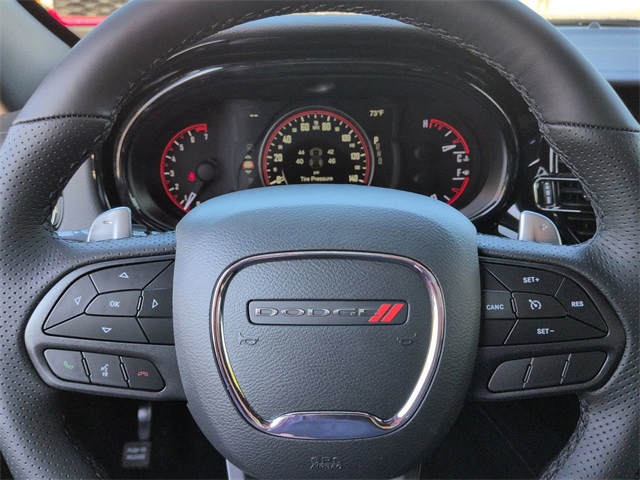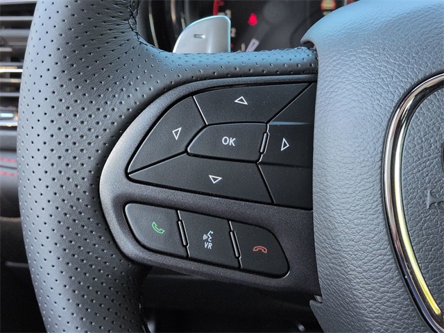 Blacktop Package (Black Roof Rails, Gloss Black Badges, Gloss Black Exterior Mirrors, GT Gloss Black Badging, Integrated Roof Rail Crossbars, Satin Black Dodge Tail Lamp Badge, and Wheels: 20" x 8" Black Noise Aluminum), Quick Order Package 2BD GT, 18" x 8" Painted Aluminum Wheels, 3.27 Rear Axle Ratio, 3rd row seats: split-bench, 4-Wheel Disc Brakes, 6 Speakers, ABS brakes, Air Conditioning, Alloy wheels, AM/FM radio: SiriusXM w/360L, Apple CarPlay/Android Auto, Auto-dimming Rear-View mirror, Auto-leveling suspension, Automatic temperature control, Brake assist, Bumpers: body-color, Cloth Bucket Seats w/Shift Insert, Compass, Delay-off headlights, Driver door bin, Driver vanity mirror, Dual front impact airbags, Dual front side impact airbags, Electronic Stability Control, Emergency communication system: Dodge Connect, Four wheel independent suspension, Front anti-roll bar, Front Bucket Seats, Front Center Armrest w/Storage, Front dual zone A/C, Front reading lights, Fully automatic headlights, Garage door transmitter, Heated door mirrors, Heated front seats, Heated steering wheel, Illuminated entry, Knee airbag, Leather steering wheel, Low tire pressure warning, Navigation System, Occupant sensing airbag, Outside temperature display, Overhead airbag, Overhead console, Panic alarm, ParkView Rear Back-Up Camera, Passenger door bin, Passenger vanity mirror, Power door mirrors, Power driver seat, Power Liftgate, Power steering, Power windows, Radio data system, Radio: Uconnect 5 Nav w/10.1" Display, Rear air conditioning, Rear anti-roll bar, Rear Load Leveling Suspension, Rear reading lights, Rear seat center armrest, Rear window defroster, Rear window wiper, Remote keyless entry, Speed control, Speed-sensing steering, Speed-Sensitive Wipers, Split folding rear seat, Spoiler, Sport steering wheel, Steering wheel mounted audio controls, Tachometer, Telescoping steering wheel, Tilt steering wheel, Traction control, Trip computer, Variably intermittent wipers, and Voltmeter. Price includes: $1000 - 2026 National Engine Retail Bonus Cash . Exp. 11/03/2025
