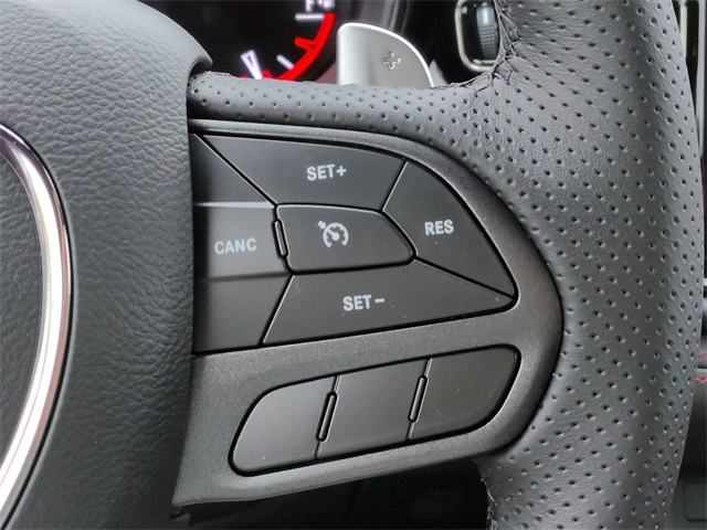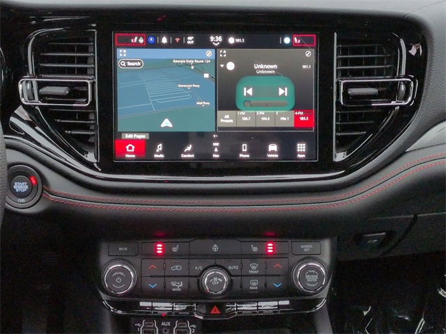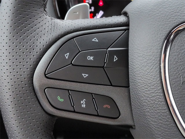 Blacktop Package (Gloss Black Badges, Gloss Black Exterior Mirrors, Integrated Roof Rail Crossbars, and Satin Black Dodge Tail Lamp Badge), Blacktop Package w/DB Black Clearcoat, Quick Order Package 22S GT, 3.09 Rear Axle Ratio, 3rd row seats: split-bench, 4-Wheel Disc Brakes, 9 Speakers, ABS brakes, Air Conditioning, Alloy wheels, AM/FM radio: SiriusXM w/360L, Apple CarPlay/Android Auto, Auto-dimming Rear-View mirror, Auto-leveling suspension, Automatic temperature control, Brake assist, Bumpers: body-color, Cloth Bucket Seats w/Shift Insert, Compass, Delay-off headlights, Driver door bin, Driver vanity mirror, Dual front impact airbags, Dual front side impact airbags, Electronic Stability Control, Emergency communication system: Dodge Connect, Exterior Mirrors w/Heating Element, Four wheel independent suspension, Front anti-roll bar, Front Bucket Seats, Front Center Armrest w/Storage, Front dual zone A/C, Front reading lights, Fully automatic headlights, Garage door transmitter, Heated door mirrors, Heated front seats, Heated steering wheel, Illuminated entry, Knee airbag, Leather steering wheel, Low tire pressure warning, Navigation System, Occupant sensing airbag, Outside temperature display, Overhead airbag, Overhead console, Panic alarm, ParkView Rear Back-Up Camera, Passenger door bin, Passenger vanity mirror, Power door mirrors, Power driver seat, Power Liftgate, Power steering, Power windows, Radio data system, Radio: Uconnect 5 Nav w/10.1" Display, Rain sensing wipers, Rear air conditioning, Rear anti-roll bar, Rear Load Leveling Suspension, Rear reading lights, Rear seat center armrest, Rear window defroster, Rear window wiper, Red Accent Stitching, Remote keyless entry, Security system, Speed control, Speed-sensing steering, Speed-Sensitive Wipers, Split folding rear seat, Spoiler, Sport steering wheel, Steering wheel mounted audio controls, Tachometer, Telescoping steering wheel, Tilt steering wheel, Traction control, Trip computer, Variably intermittent wipers, Voltmeter, Wheels: 20" x 8" Black Noise Split 5-Spoke, and Wheels: 20" x 8" Satin Carbon Split 5-Spoke.