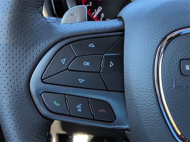 Blacktop Package (Black Roof Rails, Gloss Black Badges, Gloss Black Exterior Mirrors, Integrated Roof Rail Crossbars, and Satin Black Dodge Tail Lamp Badge), Blacktop Package w/DB Black Clearcoat, Quick Order Package 22T GT Plus (7 & 4 Pin Wiring Harness, Auto High Beam Headlamp Control, Exterior Mirrors w/Heating Element, Exterior Mirrors w/Supplemental Signals, Power 6x9 Multi-Function Foldaway Mirrors, Radio/Driver Seat/Mirrors Memory, Red Accent Stitching, and Ventilated Front Seats), 3.09 Rear Axle Ratio, 3rd row seats: split-bench, 4-Wheel Disc Brakes, 9 Speakers, ABS brakes, Air Conditioning, Alloy wheels, AM/FM radio: SiriusXM w/360L, Apple CarPlay/Android Auto, Auto-dimming Rear-View mirror, Auto-leveling suspension, Automatic temperature control, Brake assist, Bumpers: body-color, Cloth Bucket Seats w/Shift Insert, Compass, Delay-off headlights, Driver door bin, Driver vanity mirror, Dual front impact airbags, Dual front side impact airbags, Electronic Stability Control, Emergency communication system: Dodge Connect, Four wheel independent suspension, Front anti-roll bar, Front Bucket Seats, Front Center Armrest w/Storage, Front dual zone A/C, Front reading lights, Fully automatic headlights, Garage door transmitter, Heated door mirrors, Heated front seats, Heated steering wheel, Illuminated entry, Knee airbag, Leather steering wheel, Low tire pressure warning, Navigation System, Occupant sensing airbag, Outside temperature display, Overhead airbag, Overhead console, Panic alarm, ParkView Rear Back-Up Camera, Passenger door bin, Passenger vanity mirror, Power door mirrors, Power driver seat, Power Liftgate, Power steering, Power windows, Radio data system, Radio: Uconnect 5 Nav w/10.1" Display, Rain sensing wipers, Rear air conditioning, Rear anti-roll bar, Rear Load Leveling Suspension, Rear reading lights, Rear seat center armrest, Rear window defroster, Rear window wiper, Remote keyless entry, Security system, Speed control, Speed-sensing steering, Speed-Sensitive Wipers, Split folding rear seat, Spoiler, Sport steering wheel, Steering wheel mounted audio controls, Tachometer, Telescoping steering wheel, Tilt steering wheel, Traction control, Trip computer, Variably intermittent wipers, Voltmeter, Wheels: 20" x 8" Black Noise Split 5-Spoke, and Wheels: 20" x 8" Satin Carbon Split 5-Spoke.