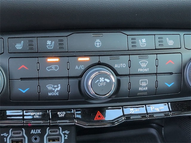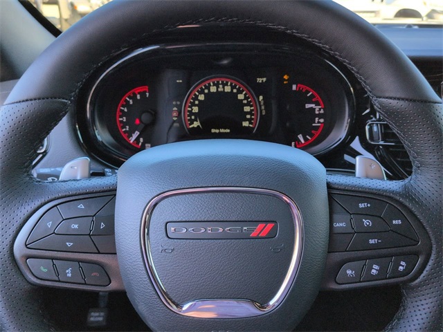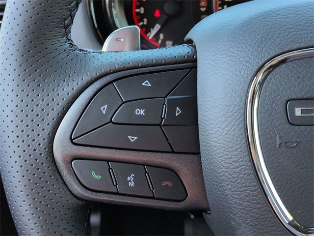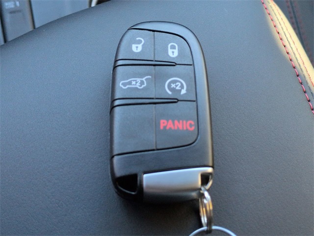 Blacktop Package (Black Roof Rails, Gloss Black Badges, Gloss Black Exterior Mirrors, Integrated Roof Rail Crossbars, and Satin Black Dodge Tail Lamp Badge), Blacktop Package w/DB Black Clearcoat, Quick Order Package 22T GT Plus (7 & 4 Pin Wiring Harness, Auto High Beam Headlamp Control, Exterior Mirrors w/Heating Element, Exterior Mirrors w/Supplemental Signals, Power 6x9 Multi-Function Foldaway Mirrors, Radio/Driver Seat/Mirrors Memory, Red Accent Stitching, and Ventilated Front Seats), 3.09 Rear Axle Ratio, 3rd row seats: split-bench, 4-Wheel Disc Brakes, 9 Speakers, ABS brakes, Air Conditioning, Alloy wheels, AM/FM radio: SiriusXM w/360L, Apple CarPlay/Android Auto, Auto-dimming Rear-View mirror, Auto-leveling suspension, Automatic temperature control, Brake assist, Bumpers: body-color, Cloth Bucket Seats w/Shift Insert, Compass, Delay-off headlights, Driver door bin, Driver vanity mirror, Dual front impact airbags, Dual front side impact airbags, Electronic Stability Control, Emergency communication system: Dodge Connect, Four wheel independent suspension, Front anti-roll bar, Front Bucket Seats, Front Center Armrest w/Storage, Front dual zone A/C, Front reading lights, Fully automatic headlights, Garage door transmitter, Heated door mirrors, Heated front seats, Heated steering wheel, Illuminated entry, Knee airbag, Leather steering wheel, Low tire pressure warning, Navigation System, Occupant sensing airbag, Outside temperature display, Overhead airbag, Overhead console, Panic alarm, ParkView Rear Back-Up Camera, Passenger door bin, Passenger vanity mirror, Power door mirrors, Power driver seat, Power Liftgate, Power steering, Power windows, Radio data system, Radio: Uconnect 5 Nav w/10.1" Display, Rain sensing wipers, Rear air conditioning, Rear anti-roll bar, Rear Load Leveling Suspension, Rear reading lights, Rear seat center armrest, Rear window defroster, Rear window wiper, Remote keyless entry, Security system, Speed control, Speed-sensing steering, Speed-Sensitive Wipers, Split folding rear seat, Spoiler, Sport steering wheel, Steering wheel mounted audio controls, Tachometer, Telescoping steering wheel, Tilt steering wheel, Traction control, Trip computer, Variably intermittent wipers, Voltmeter, Wheels: 20" x 8" Black Noise Split 5-Spoke, and Wheels: 20" x 8" Satin Carbon Split 5-Spoke.