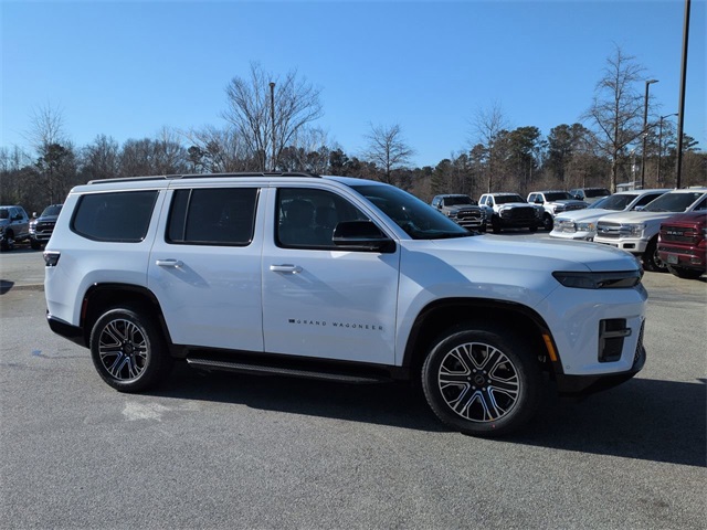Quick Order Package 29E Grand Wagoneer, 118 Mph Maximum Speed Calibration, 3.55 Rear Axle Ratio, 3rd row seats: bench, 4-Wheel Disc Brakes, 9 Speakers, ABS brakes, Air Conditioning, Alloy wheels, AM/FM radio: SiriusXM with 360L, Anti-whiplash front head restraints, Apple CarPlay/Android Auto, Audio memory, Auto Adjust in Reverse Exterior Mirrors, Auto High-beam Headlights, Auto-dimming door mirrors, Auto-Dimming Exterior Driver Mirror, Auto-dimming Rear-View mirror, Auto-leveling suspension, Automatic temperature control, Brake assist, Bumpers: body-color, Compass, Delay-off headlights, Driver door bin, Driver vanity mirror, Driver's Seat Mounted Armrest, Dual front impact airbags, Dual front side impact airbags, Electronic Stability Control, Emergency communication system: Jeep Connect, Exterior Mirrors Approach Lamps, Exterior Mirrors with Memory, Exterior Mirrors with Supplemental Signals, Exterior Parking Camera Rear, Four wheel independent suspension, Front anti-roll bar, Front Bucket Seats, Front Center Armrest w/Storage, Front dual zone A/C, Front fog lights, Front reading lights, Fully automatic headlights, Garage door transmitter, Heated door mirrors, Heated Exterior Mirrors, Heated front seats, Heated steering wheel, Illuminated entry, Knee airbag, Leather Trimmed Bucket Seats, Low tire pressure warning, Memory seat, Navigation System, Normal Duty Suspension, Occupant sensing airbag, Outside temperature display, Overhead airbag, Overhead console, Panic alarm, Passenger door bin, Passenger seat mounted armrest, Passenger vanity mirror, Power door mirrors, Power driver seat, Power Liftgate, Power passenger seat, Power steering, Power windows, Radio data system, Radio: Uconnect 5 Nav with 12.0" Display, Rain sensing wipers, Rear air conditioning, Rear anti-roll bar, Rear reading lights, Rear seat center armrest, Rear window defroster, Rear window wiper, Reclining 3rd row seat, Remote keyless entry, Security system, Speed control, Speed-sensing steering, Speed-Sensitive Wipers, Split folding rear seat, Steering wheel memory, Steering wheel mounted audio controls, Tachometer, Telescoping steering wheel, Tilt steering wheel, Traction control, Trip computer, Turn signal indicator mirrors, Variably intermittent wipers, Ventilated front seats, Voltmeter, and Wheels: 20" x 9" Machine Face Painted Aluminum.