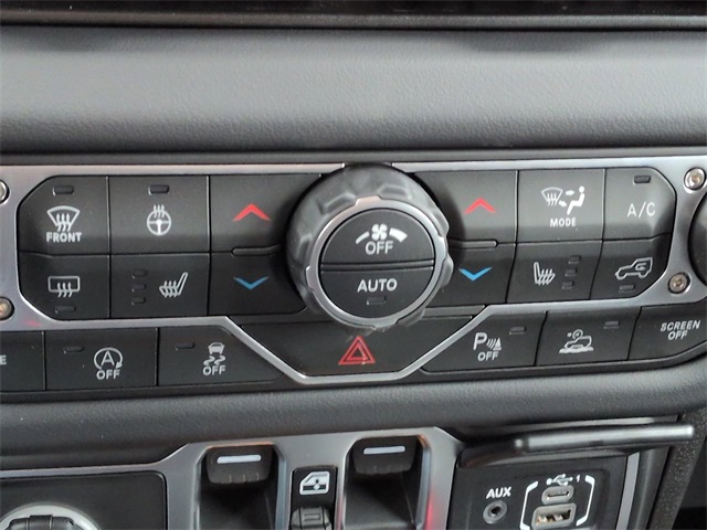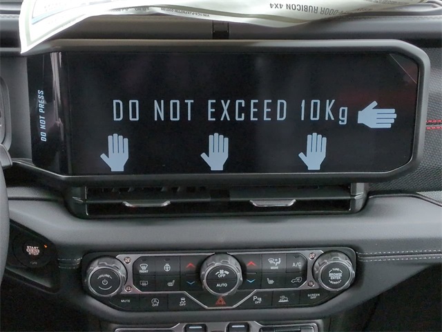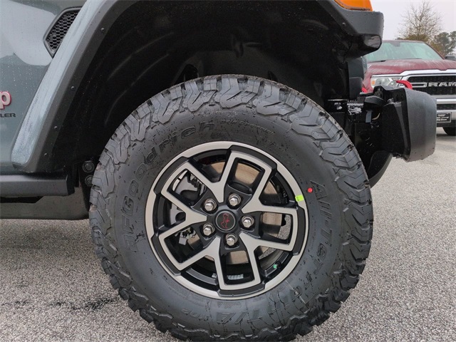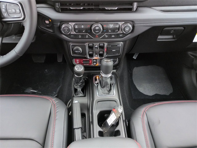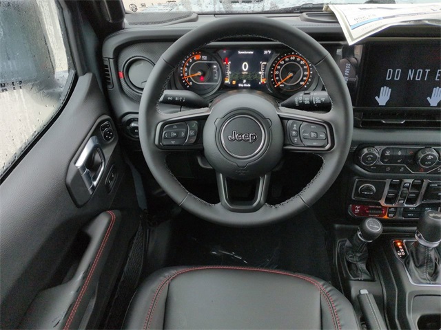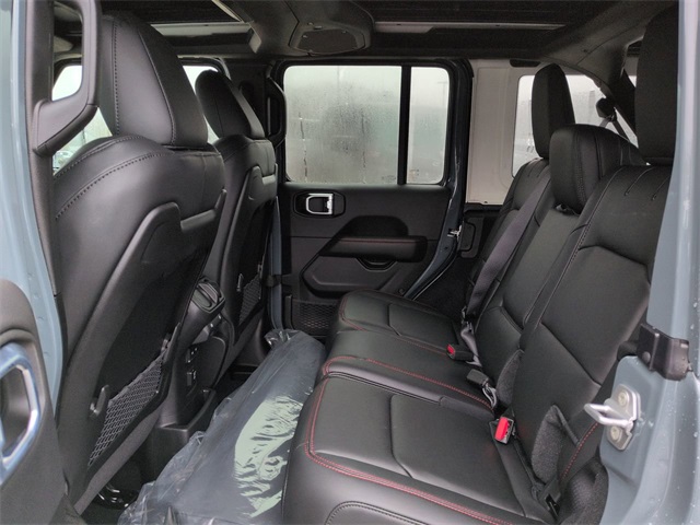 Convenience Group (Heated Front Seats, Heated Steering Wheel, and Universal Garage Door Opener), Quick Order Package 22R Rubicon, Safety Group (Auto High Beam Headlamp Control, Blind Spot and Cross Path Detection, and ParkSense Rear Park Assist System), Technology Group (12.3" Touchscreen Display, 4G LTE Wi-Fi Hot Spot, Apple CarPlay, Auto-Dimming Rear-View Mirror, Connected Travel and Traffic Services, Connectivity - US/Canada, For More Info, Call 800-643-2112, Google Android Auto, GPS Navigation, HD Radio, Integrated Center Stack Radio, Integrated Off-Road Camera, Integrated Voice Command with Bluetooth, Radio: Uconnect 5 Navigation with 12.3" Display, SiriusXM Radio Service, and SiriusXM with 360L), 4-Wheel Disc Brakes, 4.10 Rear Axle Ratio, 8 Speakers, ABS brakes, Air Conditioning, Alloy wheels, Alpine Premium Audio System, AM/FM radio: SiriusXM with 360L, Apple CarPlay/Android Auto, Automatic temperature control, Aux Battery, Auxiliary Switches, Body Color Rubicon Highline Flare, Brake assist, Class II Receiver Hitch, Cloth Low-Back Bucket Seats, Compass, Delay-off headlights, Driver door bin, Driver vanity mirror, Dual front impact airbags, Dual front side impact airbags, Electronic Stability Control, Emergency communication system: Jeep Connect, Front anti-roll bar, Front Bucket Seats, Front Center Armrest w/Storage, Front dual zone A/C, Front fog lights, Front reading lights, Fully automatic headlights, Heated door mirrors, Illuminated entry, Integrated roll-over protection, Low tire pressure warning, MOPAR All-Weather Floor Mats, Non-Lock Fuel Cap Without Discriminator, Occupant sensing airbag, Outside temperature display, Overhead airbag, Panic alarm, ParkView Rear Back-Up Camera, Passenger door bin, Passenger vanity mirror, Performance Suspension, Power door mirrors, Power steering, Power Top Quarter Window Storage Bag, Power windows, Radio data system, Radio: Uconnect 5 with 12.3" Display, Rear anti-roll bar, Rear reading lights, Rear Window Defroster, Rear Window Wiper/Washer, Remote keyless entry, Removable Rear Quarter Windows, Security system, Sky One-Touch Power Top, Speed control, Split folding rear seat, Steering wheel mounted audio controls, Stop-Start Dual Battery System, Tachometer, Telescoping steering wheel, Tilt steering wheel, Traction control, Trip computer, Variably intermittent wipers, Voltmeter, and Wheels: 17" x 7.5" Machined/Painted Black.