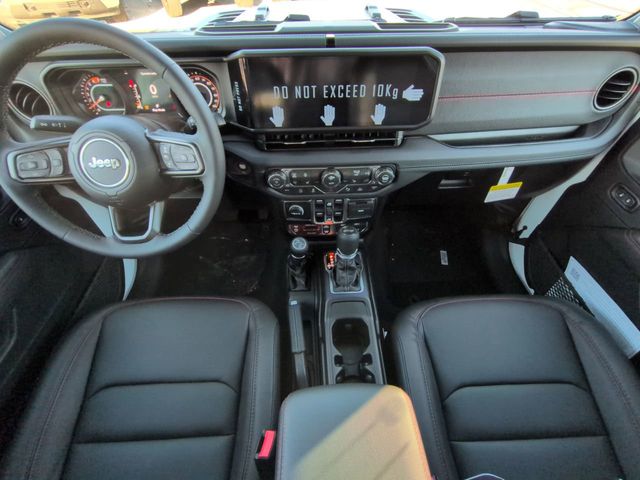Convenience Group (Heated Front Seats, Heated Steering Wheel, and Universal Garage Door Opener), Quick Order Package 24R Rubicon, Safety Group (Auto High Beam Headlamp Control, Blind Spot and Cross Path Detection, and ParkSense Rear Park Assist System), Technology Group (12.3" Touchscreen Display, 4G LTE Wi-Fi Hot Spot, Apple CarPlay, Auto-Dimming Rear-View Mirror, Connected Travel and Traffic Services, Connectivity - US/Canada, For More Info, Call 800-643-2112, Google Android Auto, GPS Navigation, HD Radio, Integrated Center Stack Radio, Integrated Off-Road Camera, Integrated Voice Command with Bluetooth, Radio: Uconnect 5 Navigation with 12.3" Display, SiriusXM Radio Service, and SiriusXM with 360L), 4-Wheel Disc Brakes, 4.10 Rear Axle Ratio, 8 Speakers, ABS brakes, Air Conditioning, Alloy wheels, Alpine Premium Audio System, AM/FM radio: SiriusXM with 360L, Apple CarPlay/Android Auto, Automatic temperature control, Aux Battery, Auxiliary Switches, Brake assist, Class II Receiver Hitch, Cloth Low-Back Bucket Seats, Compass, Delay-off headlights, Driver door bin, Driver vanity mirror, Dual front impact airbags, Dual front side impact airbags, Electronic Stability Control, Emergency communication system: Jeep Connect, Front anti-roll bar, Front Bucket Seats, Front Center Armrest w/Storage, Front dual zone A/C, Front fog lights, Front reading lights, Fully automatic headlights, Heated door mirrors, Illuminated entry, Integrated roll-over protection, Low tire pressure warning, MOPAR All-Weather Floor Mats, Non-Lock Fuel Cap Without Discriminator, Occupant sensing airbag, Outside temperature display, Overhead airbag, Panic alarm, ParkView Rear Back-Up Camera, Passenger door bin, Passenger vanity mirror, Performance Suspension, Power door mirrors, Power steering, Power Top Quarter Window Storage Bag, Power windows, Radio data system, Radio: Uconnect 5 with 12.3" Display, Rear anti-roll bar, Rear reading lights, Rear Window Defroster, Rear Window Wiper/Washer, Remote keyless entry, Removable Rear Quarter Windows, Security system, Sky One-Touch Power Top, Speed control, Split folding rear seat, Steering wheel mounted audio controls, Stop-Start Dual Battery System, Tachometer, Telescoping steering wheel, Tilt steering wheel, Traction control, Trip computer, Variably intermittent wipers, Voltmeter, and Wheels: 17" x 7.5" Machined/Painted Black. Price includes: $1000 - 2026 National Retail Bonus Cash . Exp. 03/31/2026