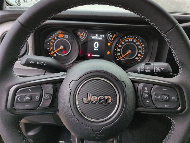 Quick Order Package 24S Sport S (Advanced Brake Assist, Automatic Headlamps, Corning Gorilla Glass, Deep Tint Sunscreen Windows, Enhanced Adaptive Cruise Control, Full Speed Forward Collision Warning Plus, Power Heated Mirrors, Premium Wrapped Steering Wheel, Security Alarm, Sun Visors with Illuminated Vanity Mirrors, and Wheels: 17" x 7.5" Gray), 12.3" Touchscreen Display, 3.45 Overall Top Gear Ratio, 4-Wheel Disc Brakes, 4G LTE Wi-Fi Hot Spot, 8 Speakers, ABS brakes, Air Conditioning, AM/FM radio: SiriusXM with 360L, Apple CarPlay, Apple CarPlay/Android Auto, Aux Battery, Brake assist, Compass, Connectivity - US/Canada, Delay-off headlights, Driver door bin, Driver vanity mirror, Dual front impact airbags, Dual front side impact airbags, Electronic Stability Control, For More Info, Call 800-643-2112, Front anti-roll bar, Front Bucket Seats, Front Center Armrest w/Storage, Front fog lights, Front reading lights, Google Android Auto, Illuminated entry, Integrated Center Stack Radio, Integrated roll-over protection, Low tire pressure warning, MOPAR All-Weather Floor Mats, Non-Lock Fuel Cap Without Discriminator, Normal Duty Suspension, Occupant sensing airbag, Outside temperature display, Overhead airbag, Panic alarm, ParkView Rear Back-Up Camera, Passenger door bin, Passenger vanity mirror, Power steering, Power Top Quarter Window Storage Bag, Power windows, Radio data system, Radio: Uconnect 5 with 12.3" Display, Rear anti-roll bar, Rear reading lights, Rear Window Defroster, Rear Window Wiper/Washer, Remote keyless entry, Removable Rear Quarter Windows, SiriusXM Radio Service, SiriusXM with 360L, Sky One-Touch Power Top, Speed control, Split folding rear seat, Steering wheel mounted audio controls, Stop-Start Dual Battery System, Tachometer, Telescoping steering wheel, Tilt steering wheel, Traction control, Trip computer, Variably intermittent wipers, and Wheels: 17" x 7.5" Black Steel Styled.