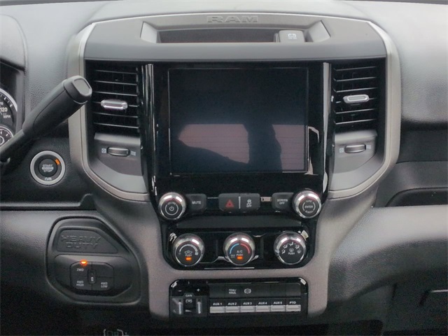 Chrome Appearance Group (19.5" x 6.0" Steel Wheels, Bright Front Bumper, Center Hub, Chrome Grille Surround, and Matte Black Mesh Grille w/Chrome), Quick Order Package 25A Tradesman, Tradesman Level 1 Equipment Group (Black Exterior Mirrors, Exterior Mirrors Courtesy Lamps, Exterior Mirrors w/Heating Element, Exterior Mirrors w/Supplemental Signals, Manual Folding Exterior Mirrors, Manual Telescoping Mirrors, Mirror Power Heat Fold Telescope Black, Mirror Running Lights, Power Adjust Mirrors, Power-Adjustable Convex Aux Mirrors, Rear Window Defroster, Trailer Brake Control, and Trailer Light Check), 2 Way Rear Headrest Seat, 4-Wheel Disc Brakes, 4.44 Axle Ratio, 40/20/40 Split Bench Seat, 4G LTE Wi-Fi Hot Spot, 6 Speakers, ABS brakes, Air Conditioning, AM/FM radio: SiriusXM, Apple CarPlay, Apple CarPlay/Android Auto, Compass, Connectivity - US/Canada, Delay-off headlights, Driver door bin, Dual front impact airbags, Dual rear wheels, Electronic Stability Control, Emergency communication system: RAM Connect, For Details, Visit DriveUconnect.com, Front anti-roll bar, Front Armrest w/Cupholders, Front Center Armrest w/Storage, Front fog lights, Front License Plate Bracket, Front reading lights, Fully automatic headlights, Global Telematics Box Module (TBM), Google Android Auto, GPS Antenna Input, Illuminated entry, Integrated Voice Command w/Bluetooth, Manual Adjust 4-Way Driver Seat, Manual Adjust 4-Way Front Passenger Seat, Occupant sensing airbag, Outside temperature display, Overhead console, Panic alarm, ParkView Rear Back Up Camera, Passenger door bin, Passenger vanity mirror, Power steering, Power Take-Off Right/Left, Power windows, Radio data system, Radio: Uconnect 5 w/8.4" Display, Rear anti-roll bar, Rear Folding Seat, Remote keyless entry, Remote USB Port - Charge Only, Speed control, Storage Tray, Tachometer, Temperature & Compass Gauge, Tilt steering wheel, Traction control, Variably intermittent wipers, Voltmeter, and Wheels: 19.5" x 6.0" Black Painted SteeL.