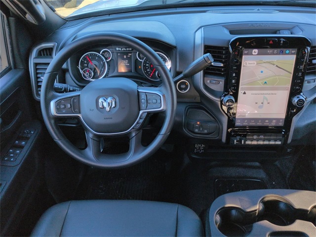 Quick Order Package 25A Tradesman, Tradesman Level 2 Equipment Group (115V Auxiliary Power Outlet, 12.0" Touchscreen Display, 400W Inverter, 4G LTE Wi-Fi Hot Spot, Air Conditioning ATC with Dual Zone Control, Alexa Built-in, Apple CarPlay, Black Exterior Mirrors, Black Power Heated Fold Telescope Mirrors, Connected Travel and Traffic Services, Connectivity - US/Canada, Digital Rearview Mirror, Disassociated Touchscreen Display, Exterior Mirrors Courtesy Lamps, Exterior Mirrors with Heating Element, Exterior Mirrors with Supplemental Signals, For Details, Visit DriveUconnect.com, For More Info, Call 800-643-2112, Global Telematics Box Module, Google Android Auto, GPS Antenna Input, GPS Navigation, HD Radio, Integrated Voice Command with Bluetooth, Manual Folding Exterior Mirrors, Manual Telescoping Mirrors, Mirror Running Lights, Off-Road Info Pages, Power Adjust Mirrors, Power Rear Sliding Window, Power-Adjustable Convex Aux Mirrors, Radio: Uconnect 5 Navigation with 12.0" Display, Rear Window Defroster, Remote Start System, SiriusXM Radio Service, SiriusXM with 360L, Temperature and Compass Gauge, Tinted Acoustic Windshield Glass, Trailer Brake Control, Trailer Light Check, and Trailer Tow Pages), 4-Wheel Disc Brakes, 4.44 Axle Ratio, 40/20/40 Split Bench Seat, 6 Speakers, ABS brakes, Air Conditioning, AM/FM radio: SiriusXM, Apple CarPlay/Android Auto, Cargo and CHMSL Lamp, Compass, Delay-off headlights, Driver door bin, Dual front impact airbags, Dual rear wheels, Electronic Stability Control, Emergency communication system: RAM Connect, Front anti-roll bar, Front Armrest with Cupholders, Front Center Armrest w/Storage, Front fog lights, Front License Plate Bracket, Front reading lights, Fully automatic headlights, Manual Adjust 4-Way Driver Seat, Manual Adjust 4-Way Front Passenger Seat, Occupant sensing airbag, Outside temperature display, Overhead console, Panic alarm, ParkView Rear Back-Up Camera, Passenger door bin, Passenger vanity mirror, Power 2-Way Driver Lumbar Adjust, Power steering, Power Take-Off Right/Left, Power windows, Radio data system, Radio: Uconnect 5 with 8.4" Display, Rear anti-roll bar, Rear Folding Seat, Rear reading lights, Remote keyless entry, Remote USB Port - Charge Only, Speed control, Tachometer, Tilt steering wheel, Traction control, Variably intermittent wipers, Voltmeter, and Wheels: 19.5" x 6.0" Black Painted SteeL.