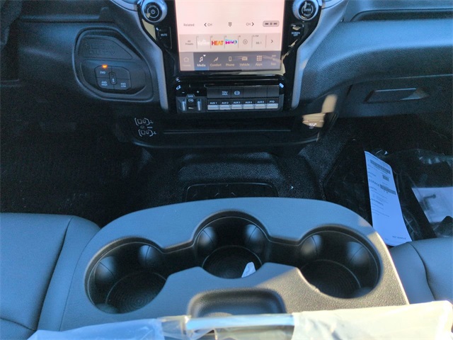Quick Order Package 25A Tradesman, Tradesman Level 2 Equipment Group (115V Auxiliary Power Outlet, 12.0" Touchscreen Display, 400W Inverter, 4G LTE Wi-Fi Hot Spot, Air Conditioning ATC with Dual Zone Control, Alexa Built-in, Apple CarPlay, Black Exterior Mirrors, Black Power Heated Fold Telescope Mirrors, Connected Travel and Traffic Services, Connectivity - US/Canada, Digital Rearview Mirror, Disassociated Touchscreen Display, Exterior Mirrors Courtesy Lamps, Exterior Mirrors with Heating Element, Exterior Mirrors with Supplemental Signals, For Details, Visit DriveUconnect.com, For More Info, Call 800-643-2112, Global Telematics Box Module, Google Android Auto, GPS Antenna Input, GPS Navigation, HD Radio, Integrated Voice Command with Bluetooth, Manual Folding Exterior Mirrors, Manuarl Telescoping Mirrors, Mirror Running Lights, Off-Road Info Pages, Power Adjust Mirrors, Power Rear Sliding Window, Power-Adjustable Convex Aux Mirrors, Radio: Uconnect 5 Navigation with 12.0" Display, Rear Window Defroster, Remote Start System, SiriusXM Radio Service, SiriusXM with 360L, Temperature and Compass Gauge, Tinted Acoustic Windshield Glass, Trailer Brake Control, Trailer Light Check, and Trailer Tow Pages), 4-Wheel Disc Brakes, 4.44 Axle Ratio, 40/20/40 Split Bench Seat, 6 Speakers, ABS brakes, Air Conditioning, AM/FM radio: SiriusXM, Apple CarPlay/Android Auto, Cargo and CHMSL Lamp, Compass, Delay-off headlights, Driver door bin, Dual front impact airbags, Dual rear wheels, Electronic Stability Control, Emergency communication system: RAM Connect, Front anti-roll bar, Front Armrest with Cupholders, Front Center Armrest w/Storage, Front fog lights, Front License Plate Bracket, Front reading lights, Fully automatic headlights, Manual Adjust 4-Way Driver Seat, Manual Adjust 4-Way Front Passenger Seat, Occupant sensing airbag, Outside temperature display, Overhead console, Panic alarm, ParkView Rear Back-Up Camera, Passenger door bin, Passenger vanity mirror, Power 2-Way Driver Lumbar Adjust, Power steering, Power Take-Off Right/Left, Power windows, Radio data system, Radio: Uconnect 5 with 8.4" Display, Rear anti-roll bar, Rear Folding Seat, Rear reading lights, Remote keyless entry, Remote USB Port - Charge Only, Speed control, Tachometer, Tilt steering wheel, Traction control, Variably intermittent wipers, Voltmeter, and Wheels: 19.5" x 6.0" Black Painted SteeL.
