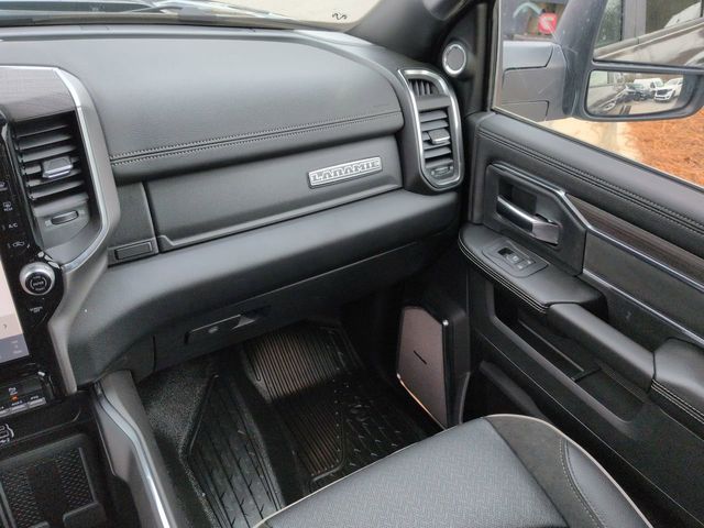 Cold Weather Group (Engine Block Heater and MOPAR Winter Front Grille Cover), Laramie Trim Group (#1 Seat Foam Cushion, 115V Auxiliary Power Outlet, 115V Auxiliary Rear Power Outlet, 12.0" Touchscreen Display, 17 Speaker Harman/Kardon Premium Sound, 2 Way Rear Headrest Seat, 2-Door Passive Entry, Front Door Locks, 4 Way Front Headrests, 400W Inverter, 4G LTE Wi-Fi Hot Spot, Air Conditioning ATC with Dual Zone Control, Alexa Built-in, Apple CarPlay, Auto High Beam Headlamp Control, Bi-Function LED Projector Headlamps, Body Color Door Handles, Body Color Fender Flares, Bucket Seats, Center Hub, CHMSL Lamp with Camera, Chrome Billets/Accents Grille, Cluster 12" TFT Color Display, Connected Travel and Traffic Services, Connectivity - US/Canada, Courtesy Lamps, Digital Rearview Mirror, Disassociated Touchscreen Display, Dual Glove Boxes, Dual Wireless Charging Pad, Foam Bottle Insert (door Trim Panel), Folding Flat Load Floor Storage, For Details, Visit DriveUconnect.com, For More Info, Call 800-643-2112, Front Door Accent Lighting, Front Seat Back Map Pockets, Full Length Upgraded Floor Console, Global Telematics Box Module, Glove Box Lamp, Google Android Auto, GPS Antenna Input, GPS Navigation, HD Radio, Heated 2nd Row Seats, Heated Front Seats, Heated Steering Wheel, High Back Seats, Highline Door Trim Panel, Integrated Voice Command with Bluetooth, Leather Trimmed Bucket Seats, LED Daytime Running Headlamps, LED Dome Lamp with on/Off Switch, LED Interior Lighting, Locking Lower Glove Box, Luxury Steering Wheel, Media Hub with 2 Charge Only USBs, Off-Road Info Pages, Overhead LED Lamps, Painted Front Bumper, Painted I/P Bezels with Premium Film, ParkSense Front/Rear Park Assist System, Power 2-Way Driver Lumbar Adjust, Power 2-Way Passenger Lumbar Adjust, Power 8-Way Adjustable Driver Seat, Power 8-Way Adjustable Front Passenger Seat, Power Rear Sliding Window, Premium Overhead Console, Radio: Uconnect 5 Navigation with 12.0" Display, Rain Sensitive Windshield Wipers, Rear 60/40 Folding Seat, Rear Door Accent Lighting, Rear Window Defroster, Remote Start System, SiriusXM Radio Service, SiriusXM with 360L, Steering Wheel Mounted Audio Controls, Sun Visors with Illuminated Vanity Mirrors, Temperature and Compass Gauge, Trailer Tow Pages, Universal Garage Door Opener, Ventilated Front Seats, and Wheels: 19.5" x 6.0" Forged Aluminum Polished), Max Tow Package (Trailer Brake Control and Trailer Light Check), Quick Order Package 25Z Big Horn (19.5" x 6.0" Steel Wheels, 40/20/40 Split Bench Seat, Acoustic Front Door Glass, Black Exterior Mirrors, Black Power Heated Fold Telescope Mirrors, Black-Out Tape, Body Insulation, Bright Front Bumper, Chrome Grille Surround, Cloth 40/20/40 Bench Seat, Exterior Mirrors Courtesy Lamps, Exterior Mirrors with Heating Element, Exterior Mirrors with Supplemental Signals, Front Armrest with Cupholders, Manual Adjust 4-Way Driver Seat, Manual Adjust 4-Way Front Passenger Seat, Manual Folding Exterior Mirrors, Manual Telescoping Mirrors, Matte Black Mesh with Chrome Grille, Mirror Running Lights, Painted I/P Bezels with Hydrographics, Passenger Sun Visor with Illuminated Mirror, Power Adjust Mirrors, Power-Adjustable Convex Aux Mirrors, Premium Vinyl Door Trim with Map Pocket, RAM Door Badges, Rear Folding Seat, Remote USB Port - Charge Only, Satin Chrome Key Fob, Storage Tray, Tinted Acoustic Windshield Glass, and Traveler/Mini Trip Computer), Safety Group (Adaptive Steering System, Drowsy Driver Detection, Lane Keep Assist, and Security Alarm), 4-Wheel Disc Brakes, 4.44 Axle Ratio, 6 Speakers, ABS brakes, Air Conditioning, AM/FM radio: SiriusXM, Apple CarPlay/Android Auto, Compass, Delay-off headlights, Driver door bin, Dual front impact airbags, Dual rear wheels, Electronic S Price includes: $2500 - 2026 National Bonus Cash . Exp. 0