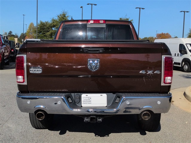 This 2015 Ram 1500 Laramie Longhorn in Western Brown features: 4D Crew Cab, HEMI 5.7L V8 Multi Displacement VVT, 8-Speed Automatic, 4WD, 10 Speakers, 115V Auxiliary Power Outlet, 20" x 9" Aluminum Polished/Gold Inserts Wheels, 4-Wheel Disc Brakes, ABS brakes, Adjustable pedals, Anti-Spin Differential Rear Axle, Audio memory, Auto High Beam Headlamp Control, Auto-dimming door mirrors, Auto-dimming Rear-View mirror, Automatic temperature control, Backup Camera, Brake assist, Chrome Tubular Side Steps, Class IV Receiver Hitch, Cold Weather Package, Compass, Convenience Group, Convenience Package, Delay-off headlights, Electronic Stability Control, Emergency communication system, Engine Block Heater, Front Bucket Seats, Front Center Armrest w/Storage, Front dual zone A/C, Front fog lights, Front wheel independent suspension, Fully automatic headlights, Garage door transmitter, Genuine wood dashboard insert, Genuine wood door panel insert, Heated door mirrors, Heated Front Seats, Heated rear seats, Heated Second Row Seats, Heated Steering Wheel, Heated steering wheel, High Back Seats, Illuminated entry, Keyless Enter-N-Go, Leather Seats, Leather Shift Knob, Leather steering wheel, Low tire pressure warning, Memory Package, Memory seat, Navigation System, Outside temperature display, Overhead console, Panic alarm, ParkView Rear Back-Up Camera, Pedal memory, Power Chrome Trailer Tow Mirrors, Power door mirrors, Power Mirror Package, Power Package, Power passenger seat, Protection Group, Push Button Start, Quick Order Package 26K Laramie Longhorn, Radio data system, Radio: Uconnect 8.4AN AM/FM/SXM/HD/BT/NAV, Rain Sensitive Windshield Wipers, RamBox Cargo Management System, Rear seat center armrest, Rear step bumper, Remote keyless entry, Remote Proximity Keyless Entry, Security system, Skid Plate Package, Speed control, Steering Wheel Mounted Audio Controls, Tilt steering wheel, Tow Package, Traction control, Trailer Brake Control, Trailer Package, Trailer Tow Mirrors, Trailer Tow Mirrors & Brake Group, Trip computer, Turn signal indicator mirrors, Ventilated Front Seats.