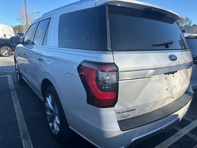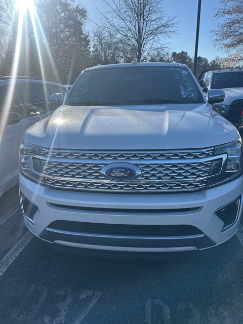 This 2018 Ford Expedition Platinum in White Platinum features: 4D Sport Utility, EcoBoost 3.5L V6 GTDi DOHC 24V Twin Turbocharged, 10-Speed Automatic, RWD, 12 Speakers, 22" Polished Aluminum Wheels, 360-Degree Camera, 3rd Row Seating, 4-Wheel Disc Brakes, 8" Color Touchscreen, ABS brakes, Active Park Assist, Adaptive suspension, Adjustable pedals, AM/FM radio: SiriusXM, Android Auto, Apple Carplay, AppLink/Apple CarPlay and Android Auto, Auto High-beam Headlights, Auto LED Headlights, Auto-dimming door mirrors, Auto-dimming Rear-View mirror, Automatic temperature control, Backup Camera, Blind Spot Monitoring, BLIS w/ Cross Traffic Alert, Bluetooth w/ Audio Streaming, Brake assist, Cold Weather Package, Compass, Delay-off headlights, Electronic Stability Control, Emergency communication system: SYNC 3 911 Assist, Equipment Group 600A (DISC), Exterior Parking Camera Rear, Four wheel independent suspension, Front Center Armrest, Front dual zone A/C, Front fog lights, Fully automatic headlights, Garage door transmitter, Genuine wood console insert, Genuine wood dashboard insert, Genuine wood door panel insert, Heated & Cooled Perforated Leather Fr Bucket Seats, Heated door mirrors, Heated front seats, Heated rear seats, Heated steering wheel, Illuminated entry, Lane Departure Warning System, Leather steering wheel, Low tire pressure warning, Memory Package, Memory seat, Multi Zone Climate Control, Navigation System, Outside temperature display, Overhead console, Panic alarm, Panoramic Sunroof/Moonroof, Parking Sensors, Pedal memory, Power door mirrors, Power Liftgate, Power Mirror Package, Power Package, Power passenger seat, Power Running Boards, Radio data system, Radio: B&O PLAY Premium Audio System by harman, Rain sensing wipers, Rear air conditioning, Rear audio controls, Rear Climate Package, Rear window wiper, Remote keyless entry, Remote Start, Reverse Brake Assist, Reverse Sensing, Roof rack, Security system, SiriusXM Satellite Radio, Speed-sensing steering, Speed-Sensitive Wipers, Split folding rear seat, Steering wheel memory, Steering wheel mounted audio controls, SYNC 3 Communications & Entertainment System, Telescoping steering wheel, Tilt steering wheel, Traction control, Trip computer, Turn signal indicator mirrors, Ventilated front seats.