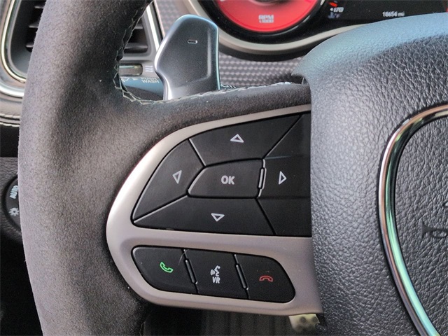 This 2020 Dodge Challenger SRT Hellcat Redeye Widebody in Indigo Blue features: 2D Coupe, 6.2L 8-Cylinder SMPI Supercharged OHV, 8-Speed Automatic, RWD, **LOCAL TRADE**, 2.62 Rear Axle Ratio, 220 MPH Primary Speedometer, 4-Wheel Disc Brakes, 4G LTE Wi-Fi Hot Spot, 4G WiFi Hotspot Telematics, 6 Speakers, 8.4" Touchscreen Display, ABS brakes, Adaptive suspension, Alcantara Appearance Package, Alcantara/Laguna Seats w/Logo, AM/FM radio: SiriusXM, Android Auto, Apple Carplay, Apple CarPlay/Android Auto, Auto-dimming Rear-View mirror, Automatic temperature control, Backup Camera, Bi Xenon Headlamp Package, Blind Spot & Cross Path Detection, Blind Spot Monitoring, Bluetooth w/ Audio Streaming, Brake assist, Brembo 6-Piston Front Brakes, Cold Weather Package, Compass, Conical Cold Air Intake, Dark Engine Turn Interior Accents, Delay-off headlights, Driver Convenience Group, Electronic Stability Control, Emergency communication system: SiriusXM Guardian, For Details, Visit DriveUconnect.com, Four wheel independent suspension, Front anti-roll bar, Front Center Armrest, Front dual zone A/C, Fully automatic headlights, Garage door transmitter, Google Android Auto, GPS Antenna Input, GPS Navigation, HD Radio, Heated door mirrors, Heated front seats, Heated steering wheel, Hellcat Logo Nappa/Alcantara Seat, High-Intensity Discharge Headlamps, Illuminated entry, Integrated Center Stack Radio, Integrated Voice Command w/Bluetooth, Launch Control with Launch Assist, Leather Shift Knob, Low tire pressure warning, Media Hub (2 USB, AUX), Navigation System, Outside temperature display, Overhead console, Painted Black Satin Hood, Parking Sensors, ParkView Rear Back-Up Camera, Performance Handling Package, Performance Package, Plus Package, Power door mirrors, Power driver seat, Power Mirror Package, Power Multi-Function Foldaway Mirrors, Power Package, Power Sunroof, Power Tilt/Telescope Steering Column, Power windows, Premium-Stitched Dash Panel, Push Button Start, Quick Order Package 27Q SRT Hellcat Redeye Widebody, Radio data system, Radio: Uconnect 4C Nav w/8.4" Display, Rear anti-roll bar, Rear Cross Traffic Alert, Rear seat center armrest, Redeye Badging, Remote keyless entry, Remote Start, Reverse Brake Assist, Reverse Sensing, Safety Package, SiriusXM Satellite Radio, SiriusXM Traffic Plus, SiriusXM Travel Link, Speed control, Split folding rear seat, Spoiler, Sport steering wheel, SRT Hellcat Logo Houndstooth Seats, SRT Power Chiller, Steering wheel mounted audio controls, Suede Door Trim Panel w/Map Pocket, Sunroof/Moonroof, Telescoping steering wheel, Tilt steering wheel, Traction control, Trip computer, USB Host Flip, Ventilated Front Seats, Wheels: 20" x 11" Carbon Black Aluminum, Wheels: 20" x 9.5" SRT Lowgloss Black Performance, Widebody Competition Suspension, Widebody Competition Suspension, Widebody Fender Flares, Wildwheel Alcantara Steering Wheel.
