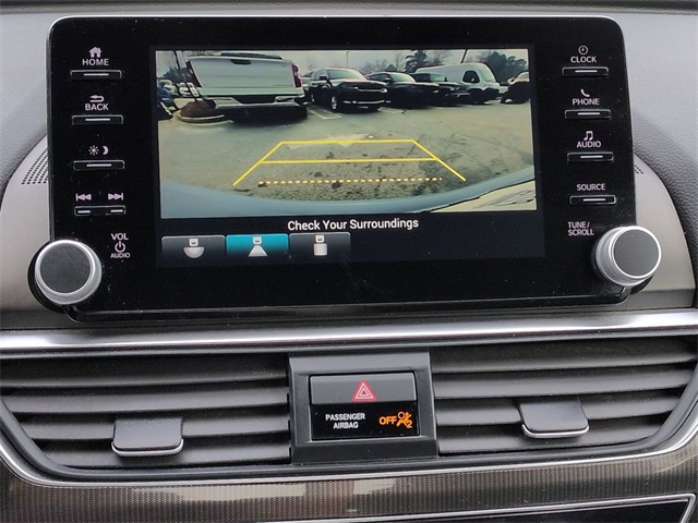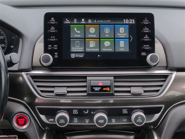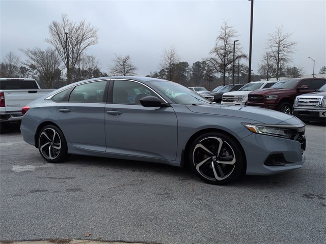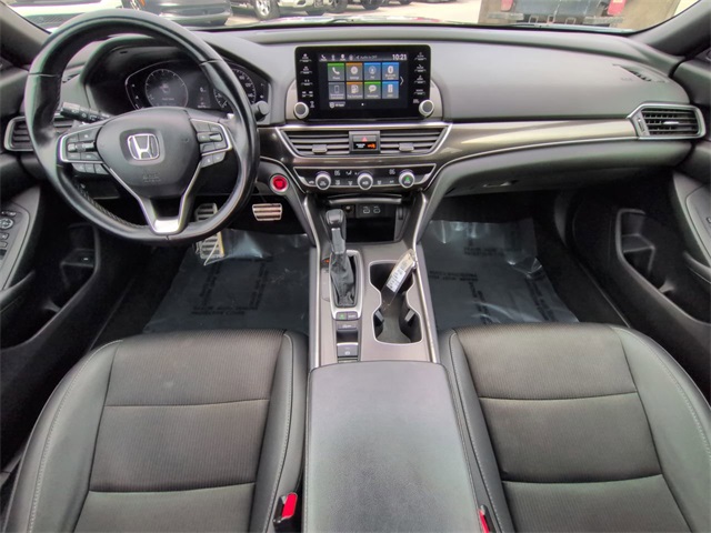 This 2021 Honda Accord Sport in Sonic Gray Pearl features: 4D Sedan, 1.5T I4 DOHC 16V Turbocharged VTEC, CVT, FWD, 4-Wheel Disc Brakes, 8 Speakers, 8" Color Touchscreen, ABS brakes, Adaptive Cruise Control, Adaptive Cruise Control: Adaptive Cruise Control (ACC) with Low-Speed Follow, Apple CarPlay/Android Auto, Auto Emergency Braking, Auto High-beam Headlights, Automatic temperature control, Backup Camera, Brake assist, Delay-off headlights, Driver Attention Warning, Electronic Stability Control, Emergency communication system: HondaLink, Exterior Parking Camera Rear, Forward collision: Collision Mitigation Braking System (CMBS) + FCW mitigation, Four wheel independent suspension, Foward Collison Alert, Front Bucket Seats, Front Center Armrest, Front dual zone A/C, Front fog lights, Fully automatic headlights, Illuminated entry, Lane Departure Warning System, Leather Shift Knob, Leather steering wheel, Low tire pressure warning, Outside temperature display, Overhead console, Panic alarm, Power door mirrors, Power driver seat, Power Mirror Package, Power Package, Power steering, Power windows, Radio data system, Radio: 180-Watt AM/FM Audio System, Rear seat center armrest, Remote keyless entry, Security system, Speed-sensing steering, Speed-Sensitive Wipers, Split folding rear seat, Spoiler, Sport Package, Steering wheel mounted audio controls, Telescoping steering wheel, Tilt steering wheel, Traction control, Trip computer, Variably intermittent wipers, Wheels: 19" Machine-Finished Alloy w/Black Inserts.