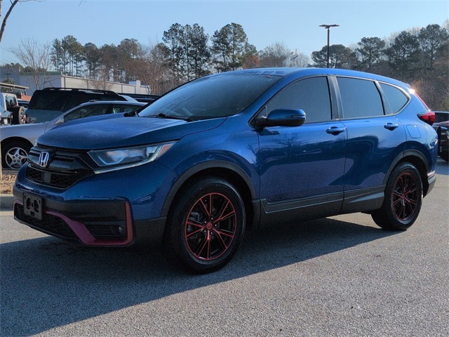 This 2021 Honda CR-V EX-L in Obsidian Blue Pearl features: 4D Sport Utility, 1.5L I4 DOHC 16V, CVT, FWD, 18" Alloy Wheels, 4-Wheel Disc Brakes, 7" Color Touchscreen, 8 Speakers, ABS brakes, Adaptive Cruise Control, Adaptive Cruise Control: Adaptive Cruise Control (ACC) with Low-Speed Follow, AM/FM radio: SiriusXM, Android Auto, Apple Carplay, Apple CarPlay/Android Auto, Auto Emergency Braking, Auto High-beam Headlights, Auto-dimming Rear-View mirror, Automatic temperature control, Backup Camera, Blind Spot Information (BSI) System warning, Blind Spot Monitoring, Bluetooth w/ Audio Streaming, Brake assist, Compass, Delay-off headlights, Driver Attention Warning, Electronic Stability Control, Exterior Parking Camera Rear, Forward collision: Collision Mitigation Braking System (CMBS) + FCW mitigation, Four wheel independent suspension, Foward Collison Alert, Front Center Armrest, Front dual zone A/C, Front fog lights, Garage door transmitter: HomeLink, Heated door mirrors, Heated Front Bucket Seats, Illuminated entry, Leather Seat Trim, Leather Seats, Leather Shift Knob, Low tire pressure warning, Memory Package, Memory seat, Outside temperature display, Overhead console, Panic alarm, Parking Sensors, Power door mirrors, Power driver seat, Power Liftgate, Power Mirror Package, Power moonroof, Power Package, Power passenger seat, Power steering, Power windows, Premium Audio Package, Premium Sound Package, Radio data system, Radio: 180-Watt AM/FM/HD/SiriusXM Audio System, Rear Cross Traffic Alert, Rear seat center armrest, Rear window wiper, Remote keyless entry, Reverse Brake Assist, Reverse Sensing, Security system, Speed-sensing steering, Speed-Sensitive Wipers, Split folding rear seat, Spoiler, Steering wheel mounted audio controls, Telescoping steering wheel, Tilt steering wheel, Traction control, Trip computer, Turn signal indicator mirrors.