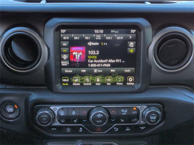 This 2021 Jeep Gladiator Sport in Granite Crystal Metallic Clearcoat features: 4D Crew Cab, 3.6L V6 24V VVT, 8-Speed Automatic, 4WD, 1-Year SiriusXM Guardian Trial, 115V Auxiliary Power Outlet, 220 Amp Alternator, 240 Amp Alternator, 4-Wheel Disc Brakes, 400W Inverter, 700 Amp Maintenance Free Battery, 8.4" Radio & Premium Audio Group, 8.4" Touchscreen Display, ABS brakes, Adaptive Cruise Control, Adaptive Cruise Control w/Stop, Advanced Brake Assist, Advanced Safety Group, Air Conditioning w/Auto Temperature Control, Alpine Premium Audio System, Android Auto, Apple CarPlay, Apple Carplay, Auto High Beam Headlamp Control, Auto-Dimming Rear-View Mirror, Automatic Headlamps, Auxiliary Switch Group, Auxiliary Switches, Backup Camera, Black 3-Piece Hard Top, Blind Spot & Cross Path Detection, Blind Spot Monitoring, Bluetooth w/ Audio Streaming, Body Color Fender Flares (2-Piece), Brake assist, Class IV Hitch Receiver, Cloth Low-Back Bucket Seats, Cluster 7.0" TFT Color Display, Cold Weather Group, Cold Weather Package, Compass, Console Bin Task Light, Convenience Group, Convenience Package, Daytime Running Lamp System, Deep Tint Sunscreen Windows, Electronic Stability Control, Emergency/Assistance Call, Freedom Panel Storage Bag, Front 1-Touch Down Power Windows, Full Speed Forward Collision Warning Plus, Google Android Auto, GPS Antenna Input, GPS Navigation, HD Radio, Heated Front Seats, Heated Steering Wheel, Heavy-Duty Dana 44 Axles, Heavy-Duty Engine Cooling, Integrated Center Stack Radio, Integrated roll-over protection, Integrated Voice Command w/Bluetooth, Leather Wrapped Steering Wheel, LED Taillamps, Low tire pressure warning, Media Hub w/2 Charge Only USBs, Molded in Color Bumper w/Accent Color, Navigation System, Normal Duty Plus Suspension, Off Road Package, Off-Road Info Pages, Outside temperature display, Parking Sensors, ParkSense Rear Park Assist System, ParkView Rear Back-Up Camera, Popular Equipment Package, Popular Equipment Package, Power Heated Mirrors, Power Mirror Package, Power Package, Power Tailgate Lock, Preferred Equipment Package, Premium Audio Package, Premium Sound Package, Quick Order Package 24S Sport S, Radio: Uconnect 4 w/7" Display, Radio: Uconnect 4C Nav w/8.4" Display, Rear Cross Traffic Alert, Rear Sliding Window, Rear Window Defroster, Remote Keyless Entry, Retro MOPAR Body Side Graphic, Reverse Brake Assist, Reverse Sensing, Safety Group, Safety Package, Security Alarm, Side Steps, SiriusXM Radio Service, SiriusXM Satellite Radio, SiriusXM Traffic Plus, SiriusXM Travel Link, Skid Plate Package, Speed Sensitive Power Locks, Split folding rear seat, Sport S, Sun Visors w/Illuminated Vanity Mirrors, Technology Group, Technology Package, Telescoping steering wheel, Tilt steering wheel, Tow Package, Traction control, Trailer Hitch Zoom, Trailer Package, Trailer Tow Package, Trip computer, Universal Garage Door Opener, USB Host Flip, Wheels: 17" x 7.5" Gloss Black Aluminum.
