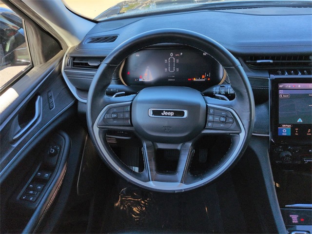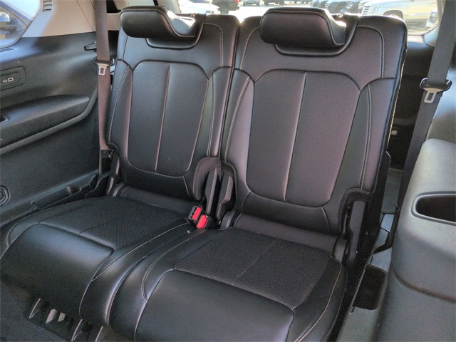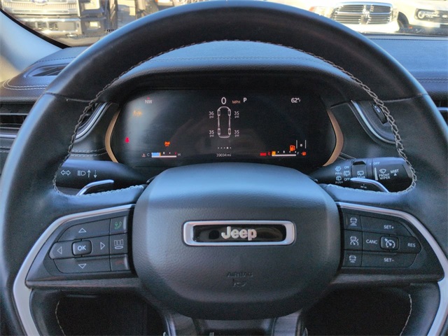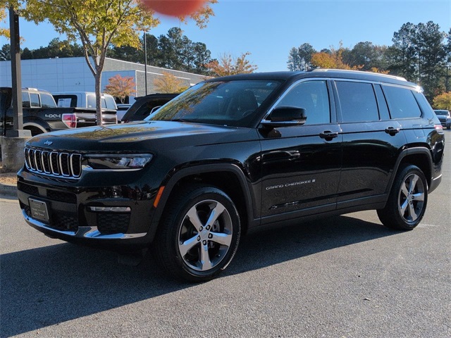 This 2021 Jeep Grand Cherokee L Limited in Diamond Black Crystal Pearlcoat features: 4D Sport Utility, 3.6L V6 24V VVT, 8-Speed Automatic, 4WD, 10.1" Touchscreen Display, 220 Amp Alternator, 2nd Row Manual Window Shades, 3 Rear Seat Head Restraints, 3rd Row Seating, 3rd row seats: split-bench, 4-Wheel Disc Brakes, 506 Watt Amplifier, 7-Passenger Seating, 9 Amplified Speakers w/Subwoofer, ABS brakes, Adaptive Cruise Control, AM/FM radio: SiriusXM w/360L, Android Auto, Apple Carplay, Apple CarPlay/Android Auto, Auto-Dimming Exterior Driver Mirror, Automatic Headlamp Leveling System, Automatic temperature control, Backup Camera, Blind Spot Monitoring, Bluetooth w/ Audio Streaming, Brake assist, Bridgestone Brand Tires, Capri Leather Seats w/Perforated Inserts, Center Rear 3-Point Seat Belt, Cold Weather Package, Compass, Connected Travel & Traffic Services, Connectivity - US/Canada, Delay-off headlights, Disassociated Touchscreen Display, Electronic Stability Control, Emergency communication system, Four wheel independent suspension, Front dual zone A/C, Front fog lights, Front Pedestrian Braking, Full Speed Auto Collision Warning Plus, Fully automatic headlights, Garage door transmitter, Google Android Auto, GPS Antenna Input, GPS Navigation, HD Radio, HD Surround Vision, Heated door mirrors, Heated steering wheel, Heavy-Duty Engine Cooling, Hill Start Assist, Illuminated entry, Integrated Center Stack Radio, Integrated Off-Road Camera, Integrated Voice Command w/Bluetooth, Intersection Collision Assist System, Lane Keeping System, Leather Seats, Leather steering wheel, Limited Package, Low tire pressure warning, Luxury Package, Luxury Tech Group II, Memory seat, Memory Steering Column, Multi Zone Climate Control, Navigation System, Outside temperature display, Overhead console, Panic alarm, Parking Sensors, ParkSense Front/Rear Park Assist w/Stop, ParkView Rear Back-Up Camera, Passive Entry - Front/Rear Doors, Liftgate, Power door mirrors, Power driver seat, Power Liftgate, Power Mirror Package, Power Package, Power passenger seat, Power steering, Power Tilt/Telescope Steering Column, Power windows, Preferred Equipment Package, Premium Audio Package, Premium Sound Package, Push Button Start, Quick Order Package 22E, Radio: Uconnect 5 Nav w/10.1" Display, Rain Sensitive Windshield Wipers, Rear air conditioning, Rear Back Up Camera Washer, Rear Climate Package, Rear Cross Traffic Alert, Rear Load Leveling Suspension, Rear window wiper, Rearview Autodim Digital Display Mirror, Remote keyless entry, Remote Start, Reverse Brake Assist, Reverse Sensing, Safety Package, Security system, SiriusXM Satellite Radio, SiriusXM w/360L, Speed control, Speed-Sensitive Wipers, Split folding rear seat, Spoiler, Steering wheel mounted audio controls, Surround View Camera System, Technology Package, Telescoping steering wheel, Tilt steering wheel, Tow Package, Traction control, Trailer Hitch Zoom, Trailer Package, Trailer Tow Group (B) (DISC), Trip computer, Turn signal indicator mirrors, USB Host Flip, Ventilated Front Seats, Wheels: 20" x 8.5" Polished/Painted Aluminum (DISC), Wireless Charging Pad, Wireless Charging Pad.