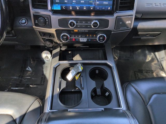 This 2022 Ford F-250SD Platinum in Rapid Red Metallic Tinted Clearcoat features: 4D Crew Cab, Power Stroke 6.7L V8 DI 32V OHV Turbodiesel, 10-Speed Automatic, 4WD, 10 Speakers, 12" LCD Productivity Touchscreen, 4G WiFi Hotspot Telematics, 5th Wheel/Gooseneck Hitch Prep Package, 8" Color Touchscreen, Adaptive Cruise Control, Adjustable pedals, Auto High-beam Headlights, Auto-dimming Rear-View mirror, Automatic temperature control, Backup Camera, Blind Spot Monitoring, BLIS w/ Cross Traffic Alert, Bluetooth w/ Audio Streaming, Body-Color Wheellip Moldings, Brake assist, Compass, Delay-off headlights, Electronic Stability Control, Electronic-Locking w/3.55 Axle Ratio, Emergency communication system: SYNC 4 911 Assist, Exterior Parking Camera Rear, Front Center Armrest, Front dual zone A/C, Front fog lights, Fully automatic headlights, GVWR: 10,000 lb Payload Package, Heated door mirrors, Heated Steering Wheel, High Capacity Trailer Tow Package, Illuminated entry, Lane Departure Warning System, Leather Seats, Leather steering wheel, LED Foglights, Low tire pressure warning, Navigation system: Connected Navigation, Off Road Package, Order Code 703A, Outside temperature display, Overhead console, Panic alarm, Panoramic Sunroof/Moonroof, Power door mirrors, Power Mirror Package, Power Package, Power passenger seat, Power Running Boards, Power Sliding Rear Window, Preferred Equipment Package, Pro Trailer Backup Assist, Pro Trailer Backup Assist - High Capacity, Push Button Start, Radio data system, Radio: B&O Sound System by Bang & Olufsen, Rain-Sensing Windshield Wipers, Rear Parking Sensors, Rear seat center armrest, Rear step bumper, Remote keyless entry, Security system, SiriusXM Radio w/360L, Skid Plate Package, Speed control, Split folding rear seat, Steering wheel mounted audio controls, SYNC 4 w/Enhanced Voice Recognition, Telescoping steering wheel, Textured Matte Finish Off-Road Running Boards, Tilt steering wheel, Tough Bed Spray-In Bedliner, Traction control, Tremor Off-Road Decal, Tremor Off-Road Package, Trip computer, Turn signal indicator mirrors, Twin Panel Power Moonroof, Ultimate Trailer Tow Camera System, Upfitter Switches (6), Wheels: 18" Low-Gloss Black Painted Aluminum, Wireless Charging Pad.