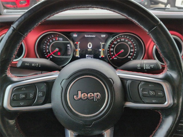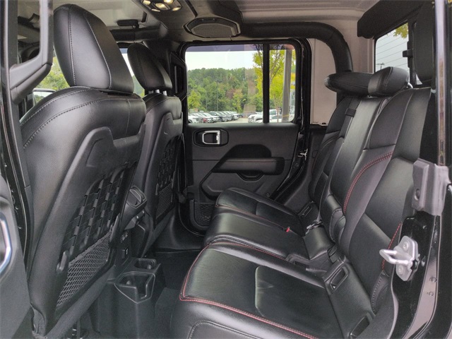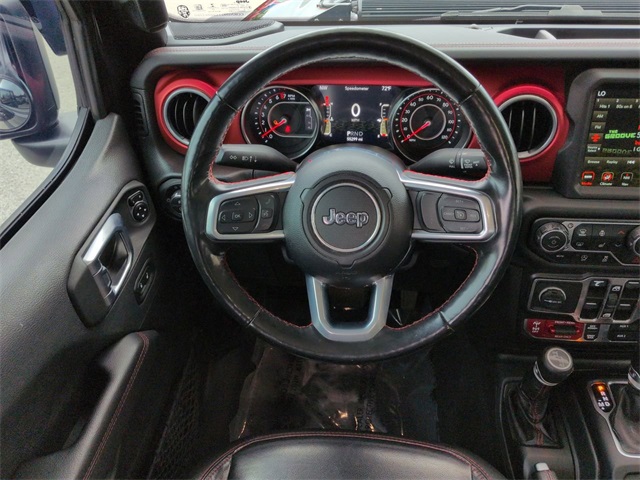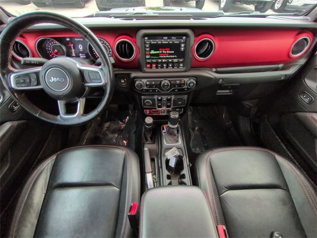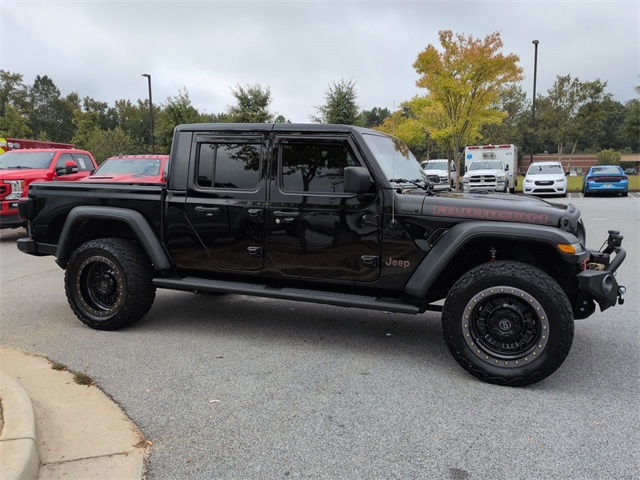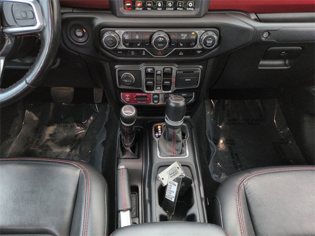 This 2022 Jeep Gladiator Rubicon in Black Clearcoat features: 4D Crew Cab, 3.6L V6 24V VVT, 8-Speed Automatic, 4WD, **LOCAL TRADE**, 240 Amp Alternator, 4-Wheel Disc Brakes, 700 Amp Maintenance Free Battery, ABS brakes, AM/FM radio: SiriusXM, Android Auto, Apple Carplay, Auto LED Headlights, Auto-dimming Rear-View mirror, Automatic temperature control, Auxiliary Switch Group, Auxiliary Switches, Backup Camera, Bluetooth w/ Audio Streaming, Brake assist, Class IV Receiver Hitch, Cold Weather Group, Cold Weather Package, Compass, Daytime Running Lamps LED Accents, Delay-off headlights, Electronic Stability Control, Emergency communication system: SiriusXM Guardian, FOX 2.0 Performance Shocks, Front Center Armrest w/Storage, Front dual zone A/C, Front fog lights, Front LED Fog Lamps, Fully automatic headlights, Garage door transmitter, Heated Front Seats, Heated Steering Wheel, Heavy-Duty Dana 44 Wide Axles, Heavy-Duty Engine Cooling, Illuminated entry, Integrated roll-over protection, Leather Seats, Leather steering wheel, LED Lighting Group, LED Park Turn Lamps, LED Premium Reflector Headlamps, LED Taillamps, Low tire pressure warning, Navigation System, Off Road Package, Panic alarm, ParkView Rear Back-Up Camera, Performance Suspension, Power door mirrors, Power steering, Power windows, Preferred Equipment Package, Premium Cloth Low-Back Bucket Seats, Push Button Start, Quick Order Package 24R, Radio data system, Radio: Uconnect 4C Nav w/8.4" Display, Rear Sliding Window, Remote keyless entry, Remote Start, Security system, Skid Plate Package, Split folding rear seat, Steering wheel mounted audio controls, Suspension Package, Telescoping steering wheel, Tilt steering wheel, Tow Package, Traction control, Trailer Hitch Zoom, Trailer Package, Trailer Tow Package, Trip computer, Variably intermittent wipers, Wheels: 17" x 7.5" Granite Crystal Aluminum, Wheels: 17" x 7.5" Polished Black Aluminum.