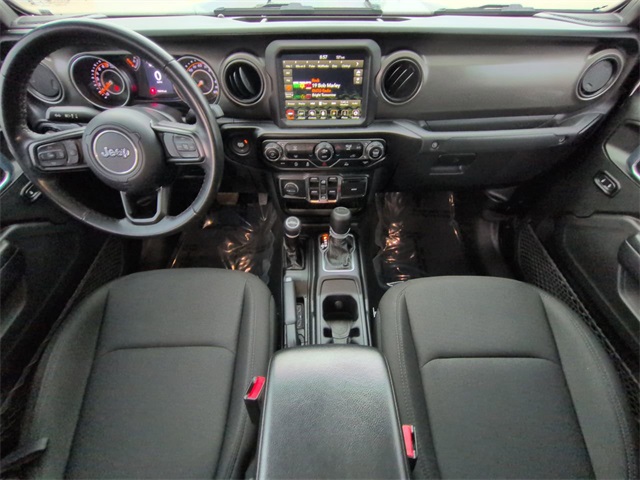 This 2022 Jeep Gladiator Sport in Black Clearcoat features: 4D Crew Cab, 3.6L V6 24V VVT, 8-Speed Automatic, 4WD, 115V Auxiliary Power Outlet, 220 Amp Alternator, 240 Amp Alternator, 4-Wheel Disc Brakes, 400W Inverter, 8.4" Radio & Premium Audio Group, 8.4" Touchscreen Display, ABS brakes, Air Conditioning w/Auto Temperature Control, Alpine Premium Audio System, Android Auto, Apple Carplay, Apple CarPlay/Android Auto, Auto-Dimming Rear-View Mirror, Automatic Headlamps, Backup Camera, Black 3-Piece Hard Top, Bluetooth w/ Audio Streaming, Body Color Fender Flares (2-Piece), Brake assist, Class IV Receiver Hitch, Cloth Low-Back Bucket Seats, Compass, Console Bin Task Light, Convenience Group, Convenience Package, Daytime Running Lamp System, Deep Tint Sunscreen Windows, Delay-off headlights, Electronic Stability Control, Emergency communication system: SiriusXM Guardian, Emergency/Assistance Call, For More Info, Call 800-643-2112, Freedom Panel Storage Bag, Front 1-Touch Down Power Windows, Front Center Armrest w/Storage, Front fog lights, GPS Antenna Input, GPS Navigation, HD Radio, Heavy-Duty Dana 44 Axles, Heavy-Duty Engine Cooling, Integrated Center Stack Radio, Integrated roll-over protection, Integrated Voice Command w/Bluetooth, Leather Wrapped Steering Wheel, Low tire pressure warning, Media Hub w/2 Charge Only USBs, Normal Duty Plus Suspension, Off Road Package, Off-Road Info Pages, Outside temperature display, ParkView Rear Back-Up Camera, Popular Equipment Package, Popular Equipment Package, Power Heated Mirrors, Power Mirror Package, Power Package, Power Tailgate Lock, Preferred Equipment Package, Premium Audio Package, Premium Sound Package, Push Button Start, Quick Order Package 24S Sport S, Radio: Uconnect 4C Nav w/8.4" Display, Rear Sliding Window, Rear Window Defroster, Remote Keyless Entry, Remote Start, Security Alarm, SiriusXM Radio Service, SiriusXM Satellite Radio, SiriusXM Traffic Plus, SiriusXM Travel Link, Skid Plate Package, Speed control, Speed Sensitive Power Locks, Split folding rear seat, Sport Package, Sport S, Sun Visors w/Illuminated Vanity Mirrors, Telescoping steering wheel, Tilt steering wheel, Traction control, Trailer Hitch Zoom, Trailer Tow Package, Trip computer, Universal Garage Door Opener, USB Host Flip, Variably intermittent wipers, Wheels: 17" x 7.5" Tech Silver Aluminum.