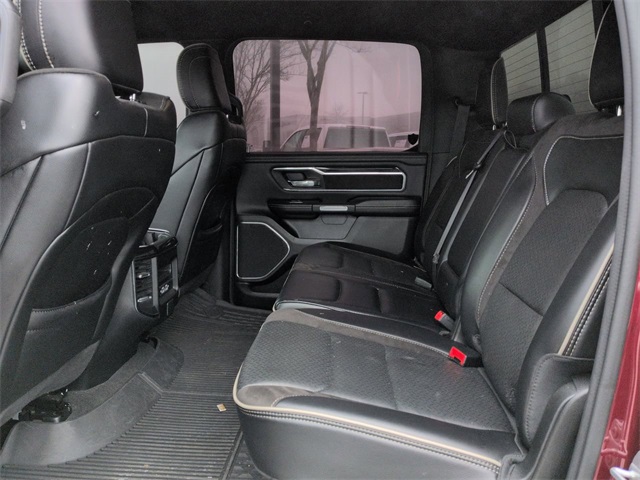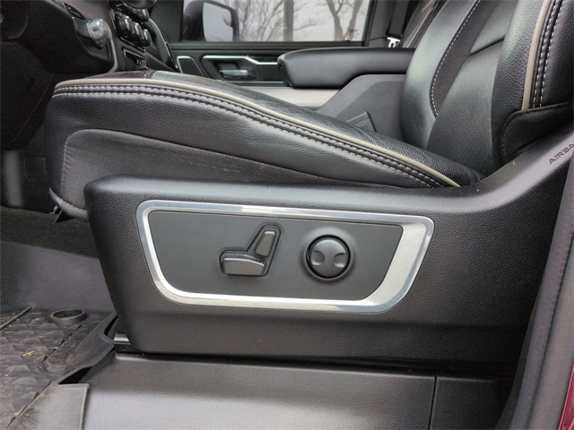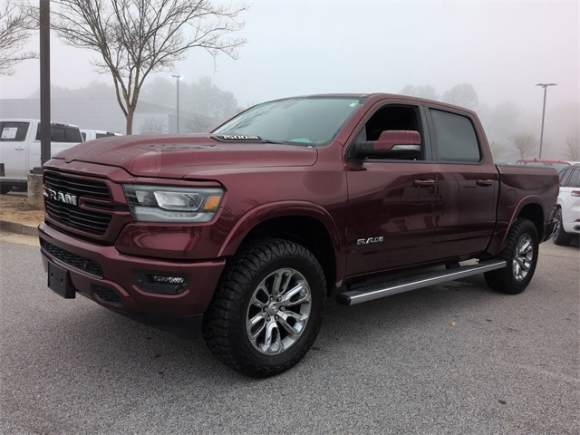 This 2022 Ram 1500 Laramie in Delmonico Red Pearlcoat features: 4D Crew Cab, EcoDiesel 3.0L V6, 8-Speed Automatic, RWD, **LOCAL TRADE**, #1 Seat Foam Cushion, 2nd Row In Floor Storage Bins, 3 Rear Seat Head Restraints, 4 Way Front Headrests, 4-Wheel Disc Brakes, 4G LTE Wi-Fi Hot Spot, 4G WiFi Hotspot Telematics, 8.4" Touchscreen Display, ABS brakes, All Plant-Installed Decals, All R1 High Radios, All Radio Equipped Vehicles, Android Auto, Apple CarPlay, Apple Carplay, Apple CarPlay/Android Auto, Audio memory, Auto High Beam Headlamp Control, Auto-dimming door mirrors, Auto-Dimming Exterior Driver Mirror, Auto-dimming Rear-View mirror, Automatic temperature control, Backup Camera, Black Interior Accents, Blind Spot & Cross Path Detection, Blind Spot Monitoring, Bluetooth w/ Audio Streaming, Body Color Door Handles, Body Color Exterior Mirrors, Body Color Front Bumper, Body Color Premium Power Mirrors, Body Color Rear Bumper w/Step Pads, Brake assist, Bucket Seats, Cold Weather Package, Connected Travel & Traffic Services, Connectivity - US/Canada, Convex Wide-Angle Mirror Insert, Delay-off headlights, Delete LED Lamp - Floor Console Bin, Disassociated Touchscreen Display, Driver Seat Memory, Electronic Stability Control, Exterior Mirrors Courtesy Lamps, Exterior Mirrors w/Heating Element, Exterior Mirrors w/Memory, Exterior Mirrors w/Supplemental Signals, Exterior Parking Camera Rear, Foam Bottle Insert (Door Trim Panel), For Details, Visit DriveUconnect.com, For More Info, Call 800-643-2112, Front & Rear Park Assist, Front Center Armrest w/Storage, Front dual zone A/C, Front fog lights, Front Seat Back Map Pockets, Front wheel independent suspension, Full Length Upgraded Floor Console, Full Speed Auto Collision Warning Plus, Fully automatic headlights, Global Telematics Box Module (TBM), Google Android Auto, GPS Antenna Input, GPS Navigation, Grille Surround 3 Body Color Tex 2 Black, HD Radio, Heated door mirrors, Heated Front Seats, Heated Steering Wheel, Heated steering wheel, Illuminated entry, Integrated Center Stack Radio, Integrated Voice Command w/Bluetooth, Laramie Level II Equipment Group, Leather Seats, Leather steering wheel, Leather Trimmed Bucket Seats, LED Foglights, Low tire pressure warning, Memory seat, Outside temperature display, Overhead console, Panic alarm, Parking Sensors, ParkSense Front/Rear Park Assist w/Stop, Pedal memory, Power 2-Way Driver Lumbar Adjust, Power 2-Way Passenger Lumbar Adjust, Power 8-Way Driver & Passenger Seats, Power door mirrors, Power Mirror Package, Power Package, Power passenger seat, Power Sliding Rear Window, Power-Folding Mirrors, Preferred Equipment Package, Premium Audio Package, Premium Sound Package, Push Button Start, Quick Order Package 28H Laramie, Radio: Uconnect 5 Nav w/8.4" Display, Rain Sensitive Windshield Wipers, Rear 60/40 Folding Seat, Rear Cross Traffic Alert, Rear seat center armrest, Rear step bumper, Remote keyless entry, Remote Start, Remote Tailgate Release, Reverse Brake Assist, Reverse Sensing, Safety Package, Security system, SiriusXM w/360L, Split folding rear seat, Sport Appearance Package, Sport Decal, Sport Performance Hood, Steering wheel mounted audio controls, Telescoping steering wheel, Tilt steering wheel, Tow Package, Traction control, Trailer Package, Trip computer, Turn signal indicator mirrors, Twill Film Appliques, USB Host Flip, Variably intermittent wipers, Ventilated Front Seats, Ventilated front seats, Voltmeter, Wheels: 20" x 9" Premium Painted w/Inserts, Wireless Charging Pad.