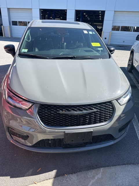 This 2023 Chrysler Pacifica Hybrid Limited in Ceramic Gray Clearcoat features: 4D Passenger Van, 3.6L V6, CVT, FWD, 10.1" Portriat Touchscreen, 115V Auxiliary Power Outlet, 13 Speakers, 20 harman/kardon Speakers, 2nd & 3rd Row Window Shades, 3-Channel Video Remote Control, 360 Surround View Camera System, 360-Degree Camera, 3rd Row Seating, 3rd row seats: split-bench, 4-Wheel Disc Brakes, 4G WiFi Hotspot Telematics, 760 Watt Amplifier, ABS brakes, Amazon Fire TV Built-In, Anodized Ink Badging, Apple CarPlay/Android Auto, Audio memory, Auto-Dimming Rear-View Mirror, Auto-dimming Rear-View mirror, Automatic temperature control, Backup Camera, Black Day Light Opening Moldings, Blind Spot Monitoring, Body Color Door Handles, Brake assist, Cold Weather Package, Delay-off headlights, Driver's Seat Mounted Armrest, DVD Entertainment Package, Electronic Stability Control, Emergency communication system: Uconnect Access, Exterior Parking Camera Rear, FamCAM Interior Camera, Four wheel independent suspension, Front dual zone A/C, Front Fascia Air Deflectors, Front fog lights, Front Pedestrian Braking, Full Speed Auto Collision Warning Plus, Fully automatic headlights, Garage door transmitter, Gloss Black Exterior Mirrors, Hands Free Sliding Doors, Heated door mirrors, Heated front seats, Heated steering wheel, Heavy Duty Suspension, High Definition Multimedia Interface, Illuminated entry, Integrated Active Noise Cancellation, KeySense, Lane Departure Warning, Leather Seats, Limited Package, Low tire pressure warning, Memory Package, Memory seat, Multi Zone Climate Control, Multimedia Package, Nappa Leather Bucket Seats w/S Logo, Navigation System, Outside temperature display, Overhead console, Panic alarm, Panoramic Sunroof/Moonroof, Parallel & Perpendicular Park Assist w/Stop, Parallel and Perpendicular ParkAssist with Stop, Parking Sensors, ParkSense Front/Rear Park Assist w/Stop, Passenger seat mounted armrest, Piano Black Interior Accents, Power door mirrors, Power Liftgate, Power Mirror Package, Power moonroof, Power Package, Power Sliding Doors, Preferred Equipment Package, Premium Audio Package, Premium Fascia Upper/Lower Grille w/Black Surround, Premium Rear Fascia Black, Premium Sound Package, Quick Order Package 2EP, Radio data system, Radio: Uconnect 5 Nav w/10.1" Display, Rain sensing wipers, Rear air conditioning, Rear Climate Package, Rear Cross Traffic Alert, Rear window wiper, Reclining 3rd row seat, Remote keyless entry, Reverse Brake Assist, Reverse Sensing, S Appearance Package, S Badge, Safety Package, Safety Sphere, Seatback Video Screens, Security system, Split folding rear seat, Spoiler, Steering wheel mounted audio controls, Telescoping steering wheel, Tilt steering wheel, Traction control, Trip computer, Turn signal indicator mirrors, Uconnect Theater Family Group, Ventilated front seats, Video USB Port, Wheels: 18" x 7.5" S-Model Aluminum Design 3, Wireless Charging Pad.