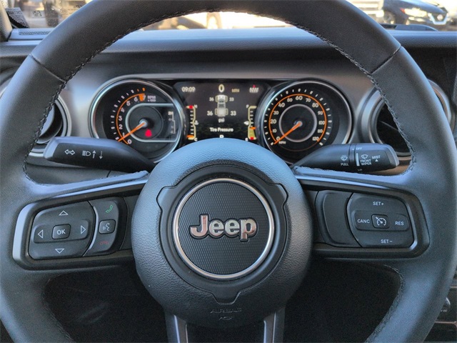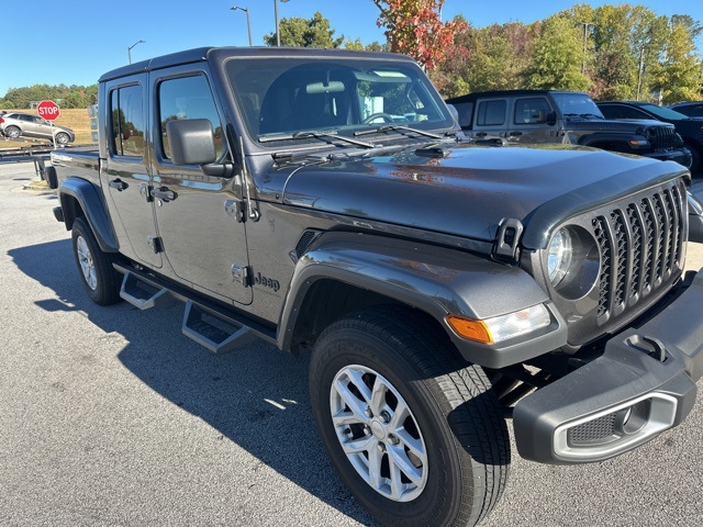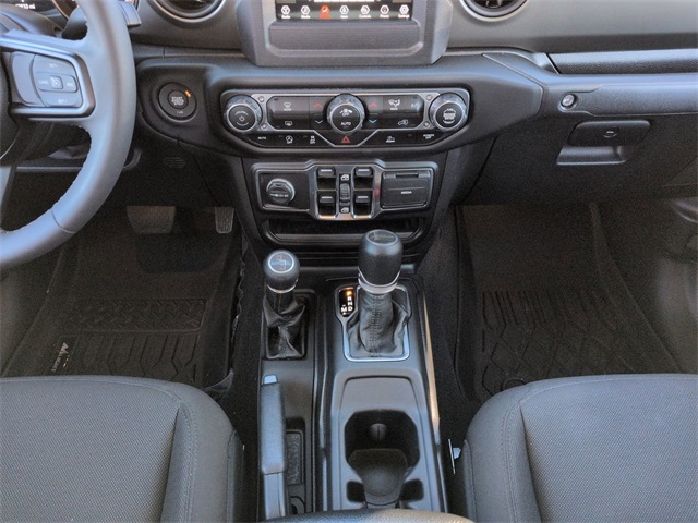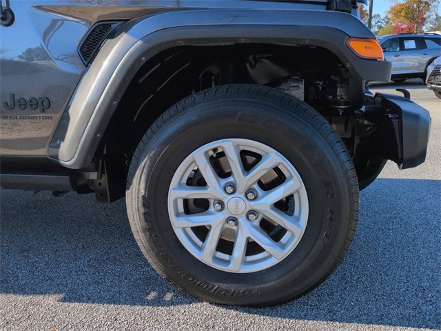 This 2023 Jeep Gladiator Sport in Granite Crystal Metallic Clearcoat features: 4D Crew Cab, 3.6L V6 24V VVT, 8-Speed Automatic, 4WD, **LOCAL TRADE**, 240 Amp Alternator, 4-Wheel Disc Brakes, 4G LTE Wi-Fi Hot Spot, ABS brakes, Air Conditioning w/Auto Temperature Control, Android Auto, Apple Carplay, Apple CarPlay/Android Auto, Automatic Headlamps, Backup Camera, Black 3-Piece Hard Top, Brake assist, Class IV Receiver Hitch, Cloth Low-Back Bucket Seats, Cluster 7.0" TFT Color Display, Compass, Convenience Group, Convenience Package, Daytime Running Lamp System, Deep Tint Sunscreen Windows, Delay-off headlights, Electronic Stability Control, Emergency communication system, Freedom Panel Storage Bag, Front 1-Touch Down Power Windows, Front Bucket Seats, Front Center Armrest w/Storage, Front Door Locks 2-Door Passive Entry, Front fog lights, GPS Antenna Input, Heavy-Duty Dana 44 Axles, Heavy-Duty Engine Cooling, Integrated Center Stack Radio, Integrated roll-over protection, Integrated Voice Command w/Bluetooth, Low tire pressure warning, Normal Duty Plus Suspension, Off Road Package, Outside temperature display, ParkView Rear Back-Up Camera, Popular Equipment Package, Popular Equipment Package, Power Heated Mirrors, Power Mirror Package, Power Package, Power Tailgate Lock, Preferred Equipment Package, Premium Wrapped Steering Wheel, Push Button Start, Quick Order Package 24S Sport S, Radio data system, Rear Sliding Window, Rear Window Defroster, Remote Keyless Entry, Remote Start, Security Alarm, SiriusXM Radio Service, SiriusXM Satellite Radio, Skid Plate Package, Speed control, Speed Sensitive Power Locks, Sport Package, Sport S, Sun Visors w/Illuminated Vanity Mirrors, Technology Group, Technology Package, Telescoping steering wheel, Tilt steering wheel, Tow Package, Traction control, Trailer Hitch Zoom, Trailer Package, Trailer Tow Package, Trip computer, Universal Garage Door Opener, USB Host Flip, Variably intermittent wipers, Wheels: 17" x 7.5 Tech Silver Aluminum.