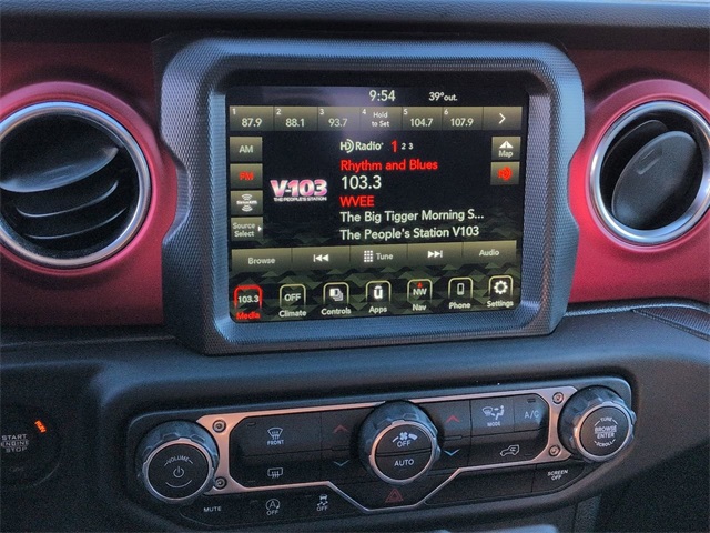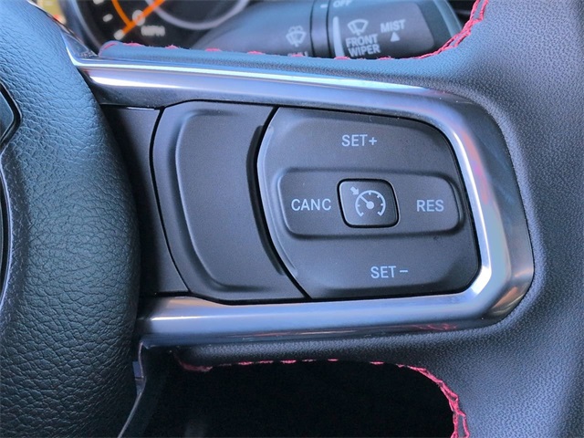 This 2023 Jeep Wrangler Rubicon in Firecracker Red Clearcoat features: 2D Sport Utility, 3.6L V6 24V VVT, 6-Speed Manual, 4WD, **LOCAL TRADE**, 4-Wheel Disc Brakes, 9 Speakers, ABS brakes, AM/FM radio: SiriusXM, Android Auto, Apple Carplay, Apple CarPlay/Android Auto, Auto-dimming Rear-View mirror, Automatic temperature control, Auxiliary Battery, Backup Camera, Bluetooth w/ Audio Streaming, Brake assist, Compass, Corning Gorilla Glass, Delay-off headlights, Electronic Stability Control, Emergency communication system: SiriusXM Guardian, Engine Oil Cooler, Front Bucket Seats, Front Center Armrest w/Storage, Front dual zone A/C, Front fog lights, Fully automatic headlights, Garage door transmitter, Heated door mirrors, Hill Start Assist, Illuminated entry, Integrated roll-over protection, Low tire pressure warning, Navigation System, Non-Locking Fuel Cap w/o Discriminator, Off Road Package, Outside temperature display, Panic alarm, ParkView Rear Back-Up Camera, Performance Suspension, Power door mirrors, Power Mirror Package, Power Package, Power steering, Power windows, Preferred Equipment Package, Premium Black Sunrider Soft Top, Premium Cloth Low-Back Bucket Seats, Quick Order Package 23R Rubicon, Radio data system, Radio: Uconnect 4C Nav w/8.4" Display, Remote keyless entry, Security system, Skid Plate Package, Start-Stop Dual Battery System, Steering wheel mounted audio controls, Telescoping steering wheel, Tilt steering wheel, Traction control, Trip computer, Variably intermittent wipers, Wheels: 17" x 7.5" Machined/Painted Black.