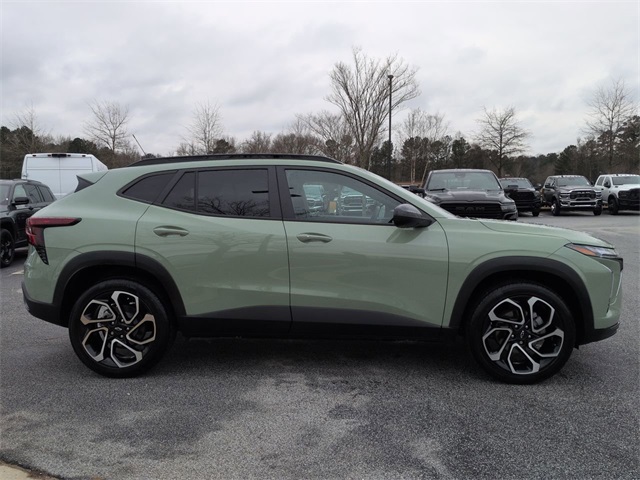 This 2024 Chevrolet Trax 2RS in Cacti Green features: 4D Sport Utility, 1.2L Ecotec Turbo DOHC DI w/VVT, 6-Speed Automatic, FWD, 4-Way Manual Front Passenger Seat Adjuster, 4-Wheel Disc Brakes, 6-Speaker Audio System Feature, 6-Way Manual Driver Seat Adjuster, 8" Color Touchscreen, ABS brakes, Adaptive Cruise Control, Adaptive Cruise Control, AM/FM radio: SiriusXM, Android Auto, Apple Carplay, Auto Emergency Braking, Auto High-beam Headlights, Auto LED Headlights, Automatic temperature control, Backup Camera, Blind Spot Monitoring, Bluetooth w/ Audio Streaming, Brake assist, Compass, Delay-off headlights, Driver Confidence Package, Electronic Stability Control, Emergency communication system: OnStar and Chevrolet connected services capable, Evotex Seat Trim, Exterior Parking Camera Rear, Following Distance Indicator, Foward Collison Alert, Front Pedestrian Braking, Front wheel independent suspension, Fully automatic headlights, Heated door mirrors, Heated Driver & Front Passenger Seats, Heated front seats, Heated steering wheel, Illuminated entry, Lane Change Alert w/Side Blind Zone Alert, Lane Departure Warning, Lane Keeping System, Low tire pressure warning, Outside temperature display, Overhead console, Panic alarm, Parking Sensors, Power door mirrors, Power Mirror Package, Power Package, Power Sliding Glass Sunroof w/Manual Shade, Power steering, Power windows, Preferred Equipment Group 2RS, Preferred Equipment Package, Radio data system, Radio: Audio System w/AM/FM, Rear Cross Traffic Alert, Rear Cross-Traffic Alert, Rear Park Assist, Rear Park Assist (DISC), Rear window wiper, Remote keyless entry, Reverse Brake Assist, Reverse Sensing, Safety Package, Security system, SiriusXM, Split folding rear seat, Spoiler, Sport steering wheel, Steering wheel mounted audio controls, Sunroof Package, Sunroof/Moonroof, Telescoping steering wheel, Tilt steering wheel, Traction control, Trip computer, Variably intermittent wipers, Wheels: 19" Black-Painted Machined Aluminum, Wireless Charging, Wireless Charging Pad.