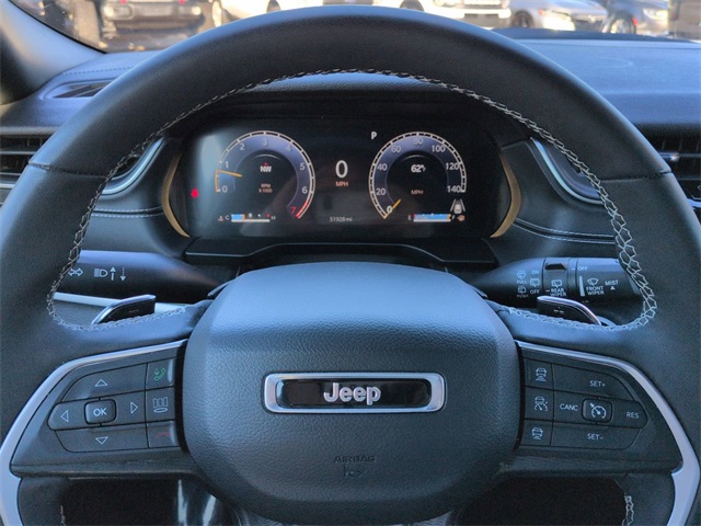 This 2024 Jeep Grand Cherokee L Altitude in Bright White Clearcoat features: 4D Sport Utility, 3.6L V6 24V VVT, 8-Speed Automatic, 4WD, 115V Auxiliary Power Outlet, 2nd Row 60/40 Bench w/Manual Tip/Slide, 2nd Row Seat Center Armrest/Cupholders, 3 Rear Seat Head Restraints, 3rd Row Charge-Only USB Ports, 3rd Row Seating, 3rd row seats: split-bench, 4-Wheel Disc Brakes, 6 Speakers, 7-Passenger Seating, Adaptive Cruise Control, Altitude Appearance Package, Android Auto, Apple Carplay, Auto LED Headlights, Automatic temperature control, Backup Camera, Black Headliner, Blind Spot Monitoring, Bluetooth w/ Audio Streaming, Brake assist, Capri Leatherette/Suede Seats, Center Rear 3-Point Seat Belt, Cold Weather Package, Compass, Delay-off headlights, Delete Laredo Badge, Electronic Stability Control, Emergency communication system, Four wheel independent suspension, Front Center Armrest w/Storage, Front dual zone A/C, Front Pedestrian Braking, Full Speed Auto Collision Warning Plus, Fully automatic headlights, Gloss Black Exterior Accents, Heated door mirrors, Heated Front Seats, Heated Steering Wheel, Hill Start Assist, Illuminated entry, Lane Keeping System, Low tire pressure warning, Manual Fold Seatbacks, Outside temperature display, Overhead console, Panic alarm, Parking Sensors, ParkView Rear Back-Up Camera, Power door mirrors, Power driver seat, Power Liftgate, Power Mirror Package, Power Package, Power steering, Power windows, Preferred Equipment Package, Quick Order Package 23B Altitude, Radio data system, Radio: Uconnect 5 w/8.4" Display, Rain Sensitive Windshield Wipers, Rear air conditioning, Rear Climate Package, Rear Cross Traffic Alert, Rear window wiper, Reclining 3rd row seat, Remote keyless entry, Remote Start System, Reverse Brake Assist, Reverse Sensing, Safety Package, Security system, Selectable Tire Fill Alert, Speed control, Speed-Sensitive Wipers, Split folding rear seat, Spoiler, Steering wheel mounted audio controls, Telescoping steering wheel, Tilt steering wheel, Traction control, Trip computer, Wheels: 18" x 8.0" Fully Painted Aluminum 1, Wireless Charging Pad, Wireless Charging Pad.