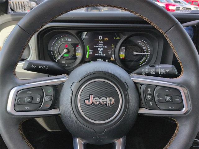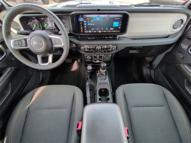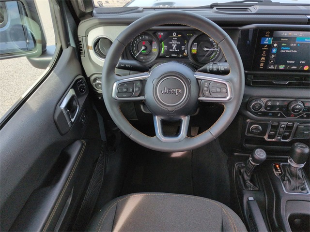 This 2024 Jeep Wrangler Sahara 4xe in Anvil Clear Coat features: 4D Sport Utility, 2.0L I4 DOHC, 8-Speed Automatic, 4WD, 12.3" Touchscreen Display, 3rd Generation Heavy-Duty Dana 44 Axles, 4-Wheel Disc Brakes, 4G LTE Wi-Fi Hot Spot, 8 Speakers, ABS brakes, Adaptive Cruise Control, Android Auto, Apple CarPlay/Android Auto, Audio Package, Auto High Beam Headlamp Control, Auto LED Headlights, Automatic temperature control, Backup Camera, Blind Spot & Cross Path Detection, Blind Spot Monitoring, Bluetooth w/ Audio Streaming, Body Color 3-Piece Hard Top, Brake assist, Cloth Low-Back Bucket Seats, Cold Weather Package, Compass, Delay-off headlights, Electronic Stability Control, Emergency communication system: Jeep Connect, Freedom Panel Storage Bag, Front Bucket Seats, Front Center Armrest w/Storage, Front dual zone A/C, Front fog lights, Fully automatic headlights, Heated door mirrors, Heated front seats, Heated steering wheel, Illuminated entry, Integrated Center Stack Radio, Integrated roll-over protection, Integrated Voice Command w/Bluetooth, LED Foglights, Low tire pressure warning, No Soft Top, Outside temperature display, Panic alarm, Parking Sensors, ParkSense Rear Park Assist System, ParkView Rear Back-Up Camera, Power door mirrors, Power Mirror Package, Power Package, Power steering, Power windows, Preferred Equipment Package, Push Button Start, Quick Order Package 29P Sahara, Radio: Uconnect 5 w/12.3" Display, Rear Cross Traffic Alert, Rear seat center armrest, Rear Window Defroster, Rear Window Wiper/Washer, Remote keyless entry, Remote Start, Reverse Brake Assist, Reverse Sensing, Safety Group, Safety Package, Security system, Side Steps, Speed control, Split folding rear seat, Sport Suspension, Steering wheel mounted audio controls, Telescoping steering wheel, Tilt steering wheel, Traction control, Trip computer, Wheels: 20" x 8" Painted Black Aluminum.