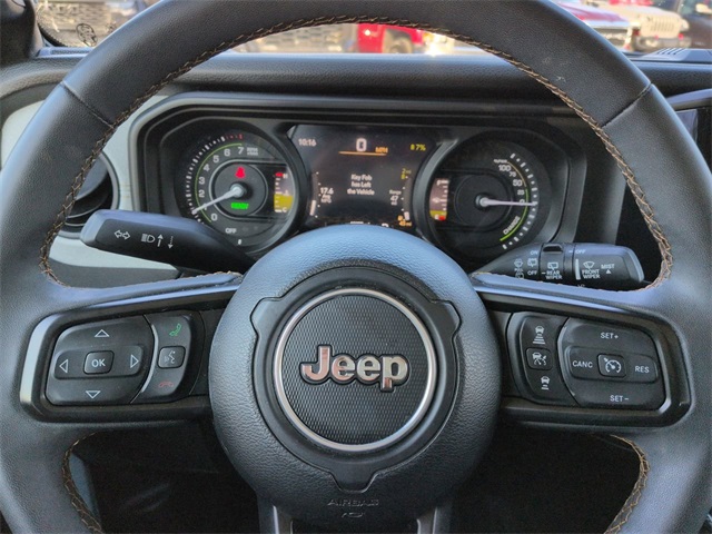 This 2024 Jeep Wrangler Sport S 4xe in Earl Clearcoat features: 4D Sport Utility, 2.0L I4 DOHC, 8-Speed Automatic, 4WD, 3rd Generation Heavy-Duty Dana 44 Axles, 4-Wheel Disc Brakes, ABS brakes, Adaptive Cruise Control, Android Auto, Apple Carplay, Apple CarPlay/Android Auto, Automatic temperature control, Backup Camera, Black 3-Piece Hard Top, Bluetooth w/ Audio Streaming, Brake assist, Compass, Delay-off headlights, Electronic Stability Control, Freedom Panel Storage Bag, Front Bucket Seats, Front Center Armrest w/Storage, Front dual zone A/C, Front fog lights, Front Pedestrian Braking, Full Speed Auto Collision Warning Plus, Fully automatic headlights, Heated door mirrors, Illuminated entry, Integrated roll-over protection, Low tire pressure warning, No Soft Top, Outside temperature display, Panic alarm, ParkView Rear Back-Up Camera, Power door mirrors, Power Mirror Package, Power Package, Power steering, Power windows, Preferred Equipment Package, Quick Order Package 29U Sport S, Radio data system, Radio: Uconnect 5 w/12.3" Display, Rear Window Defroster, Rear Window Wiper/Washer, Remote keyless entry, Security system, Speed control, Split folding rear seat, Sport Package, Sport Suspension, Telescoping steering wheel, Tilt steering wheel, Traction control, Trip computer, Variably intermittent wipers, Wheels: 20" x 8" Machined/Painted Gray.
